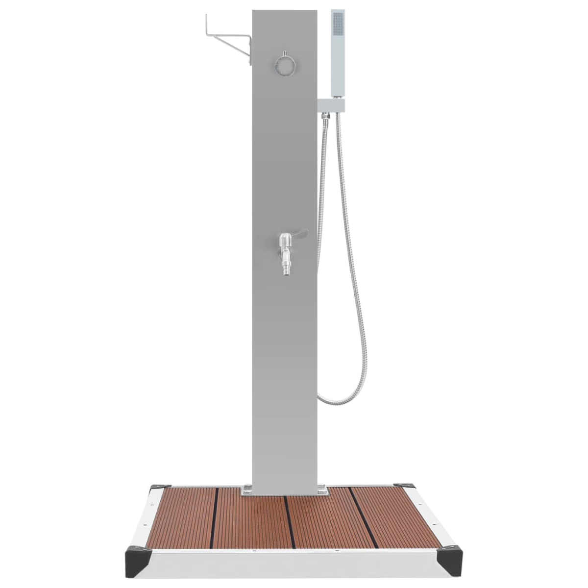 Our garden shower faucet has a stylish design. Combined with sleek shower tray, it will make a great addition to your swimming pool and other outdoor living space. The garden faucet is made of durable stainless steel with a brushed finish, ensuring its weather-resistance. It has a faucet and a handheld shower head, which can meet your gardening, watering and quick showering needs. It is also equipped with a bracket for hanging up the water hose easily. Our shower base offers the highest level of hygiene protection, featuring durability and corrosion-resistance. The garden shower tray is easy to clean with just a damp cloth. Additionally, the fixing holes are predrilled for easy installation. The shower tao and trey are easy to assemble. Mounting accessories are also included in the delivery.