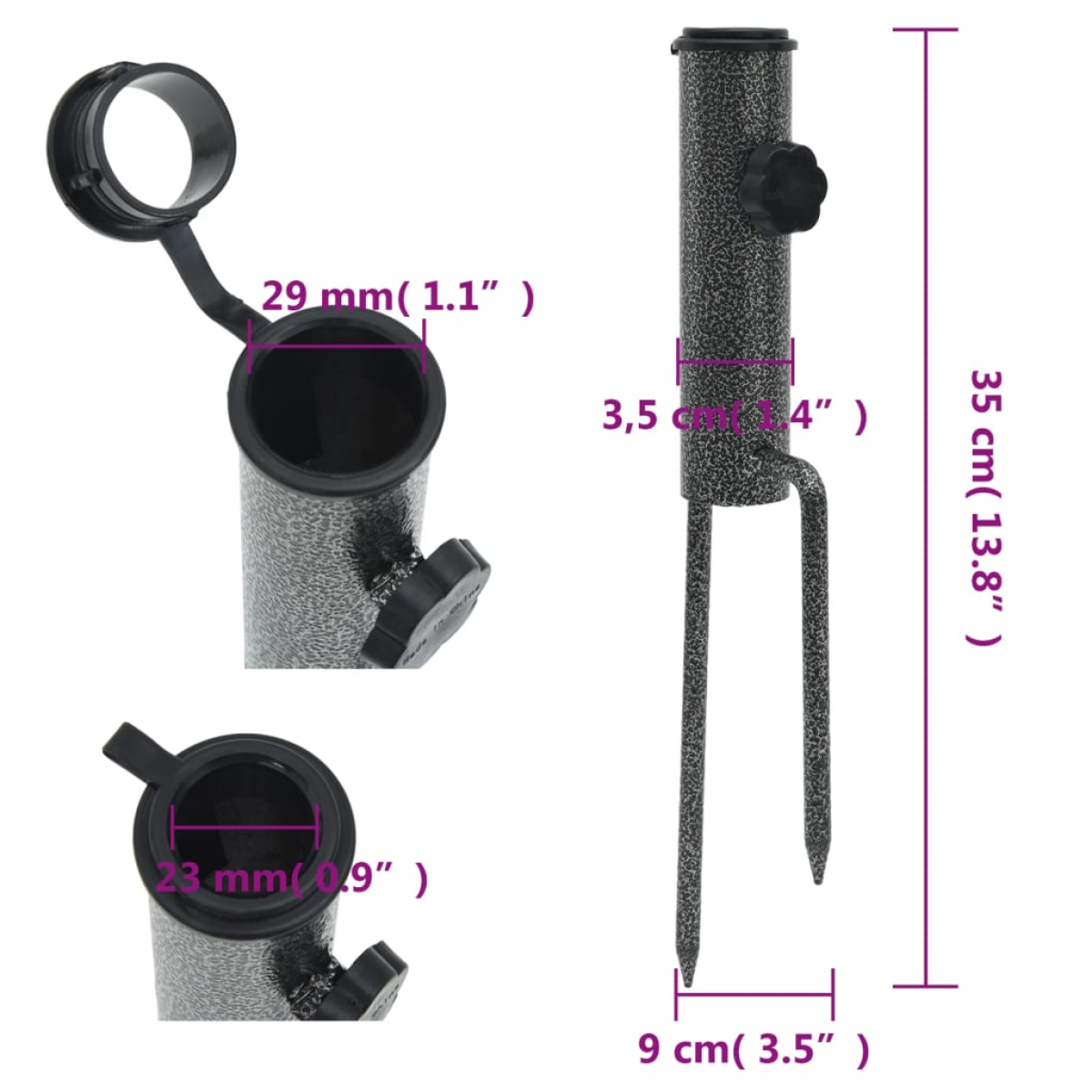 These parasol stands simply plug into the ground and provide instant shade by holding your parasol in place. Durable and robust: The parasol holder is made of galvanised steel, which is durable and long-lasting. And it can be embedded deep and stably in the sand, thus providing a stable base for the parasol.Easy to use: Simply insert the umbrella stand into the ground, place the desired items in the holder, and tighten the mounting screws.Adjustable diameter: There is a screw adjustment button to make it suitable for different umbrella bars that you can adjust for your needs.Multiple applications: This parasol base is suitable for parasols, fishing umbrellas, garden umbrellas, and other products that need to be fixed upright for use.