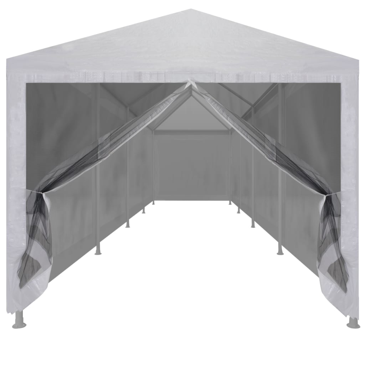 Our party tent with mesh side walls is perfect for anyone who wants to have an open air feel but does not want to deal with insects when having outdoor activities. This party tent will be ideal for a wide range of outdoor events, such as shows, weddings, parties, BBQs, festivals and so on. Made of heavy-duty, powder-coated steel, this partytent is extremely durable. The roof covering is made of high-quality PE, making it water and UV resistant. The tent has ten mesh side walls, which protects you from pesky insects. And two of the side walls have a zipped entrance for easy access. The partytent is easy to install with included mounting accessories. NOTE: This product should NEVER be used under bad weather, such as strong wind, heavy rain, snow, storm, etc.