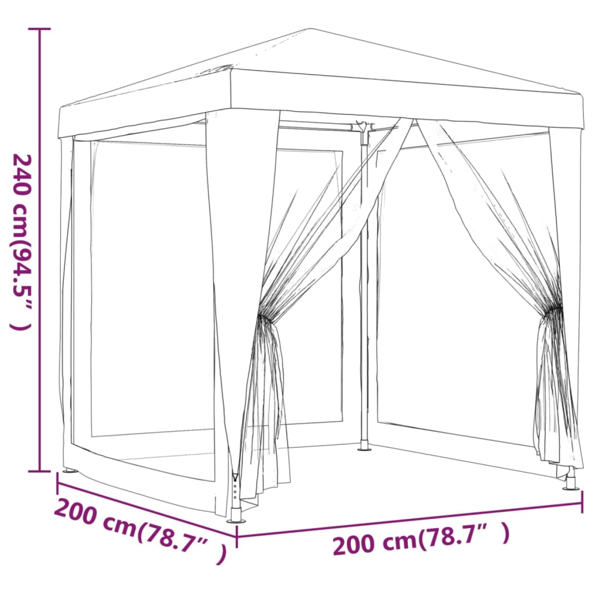- Dimensions: 200 x 200 x 240 cm (L x W x H)