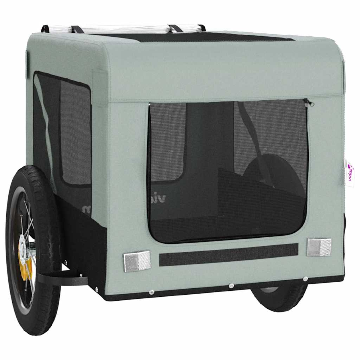 This handy pet bike trailer is a great addition to your pet's day out, allowing your pet to enjoy a more comfortable journey. Durable frame: Iron is a strong and hard material. It's a solid favourite in industrial and furniture construction. With a frame made of iron, the bicycle trailer is sturdy and reliable, giving you peace of mind when riding on the road. Comfortable bike trailer: This bike cargo trailer is made from oxford fabric and features the PVC cover to keep your pet out of the drizzle. In addition, there is a black load-bearing board at the bottom for comfortable space. Convenient design: Zippered front and back doors make it easy to get in and out, and the mesh windows allow air to circulate inside and keep your pet cool during the journey.Safe riding: The bicycle cargo trailer has two large wheels that allow for smooth and safe travel on various grounds and the reflectors on the outside provide visibility in the dark, plus the flag can increase traffic safety. Wide applications: Perfect for carrying small dogs and pets, this pet bike trailer can be attached to your bike easily. It can also be used to carry groceries, camping equipment, sporting goods, or whatever you need to take with you!