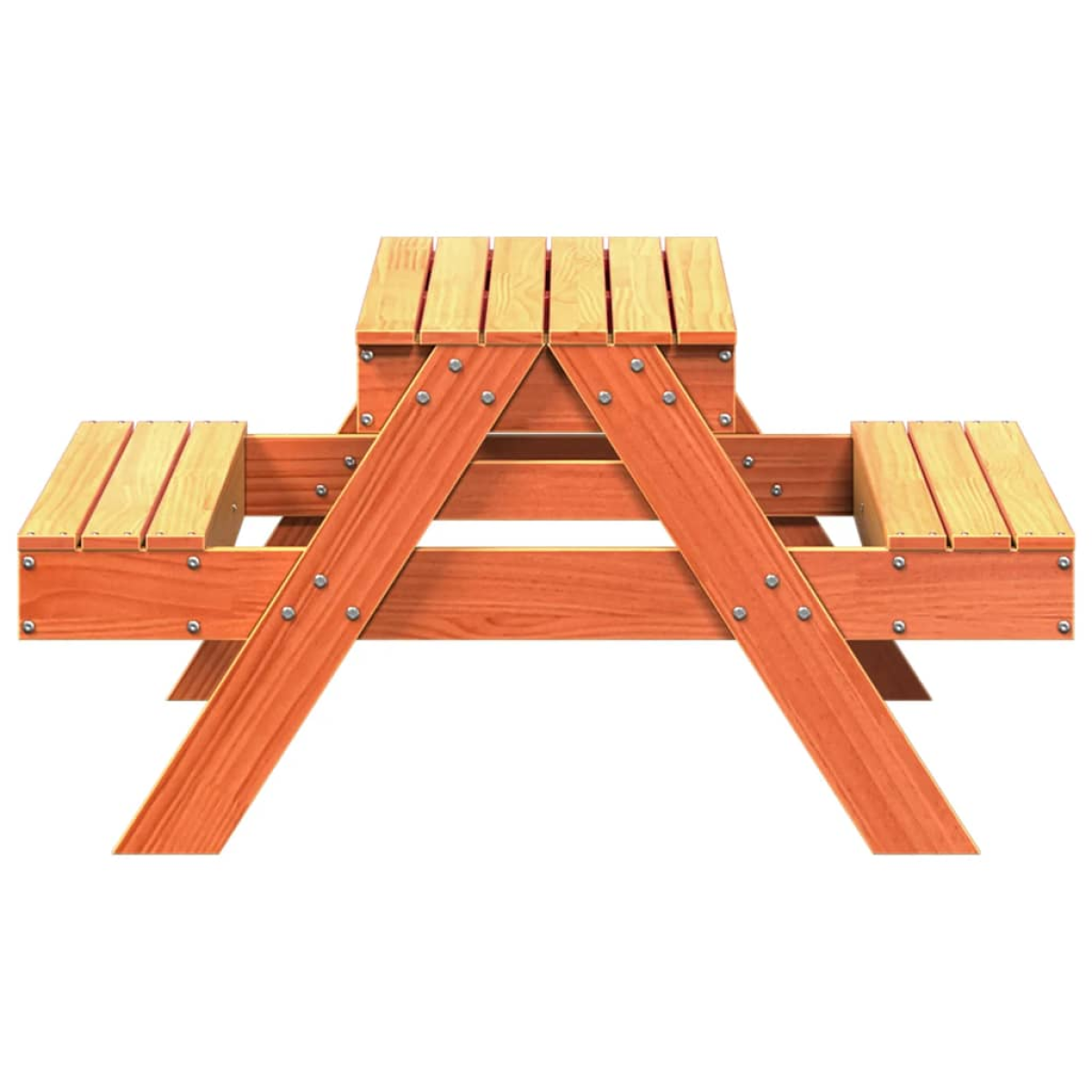 This picnic table allows children to comfortably eat outside, play board games, and entertain with their friends. Durable and robust: The garden picnic table is made of solid pine wood and has a sturdy and stable structure that can accompany your child for a long time.Ventilated: The spacious seats with a slat design provide a comfortable sitting experience for your child, increase air circulation, and prevent water accumulation.Multiple applications: This children’s picnic table is perfect for picnics, games, drawing, and other fun activities. Additionally, you can remove the centre wooden panel to reveal a sandpit.Versatile scenarios: This garden table serves as ideal furniture for kids in gardens, suitable for both residential use and daily school or park environments. Good to know:To make sure your outdoor furniture stays beautiful, we recommend protecting it with a waterproof cover.