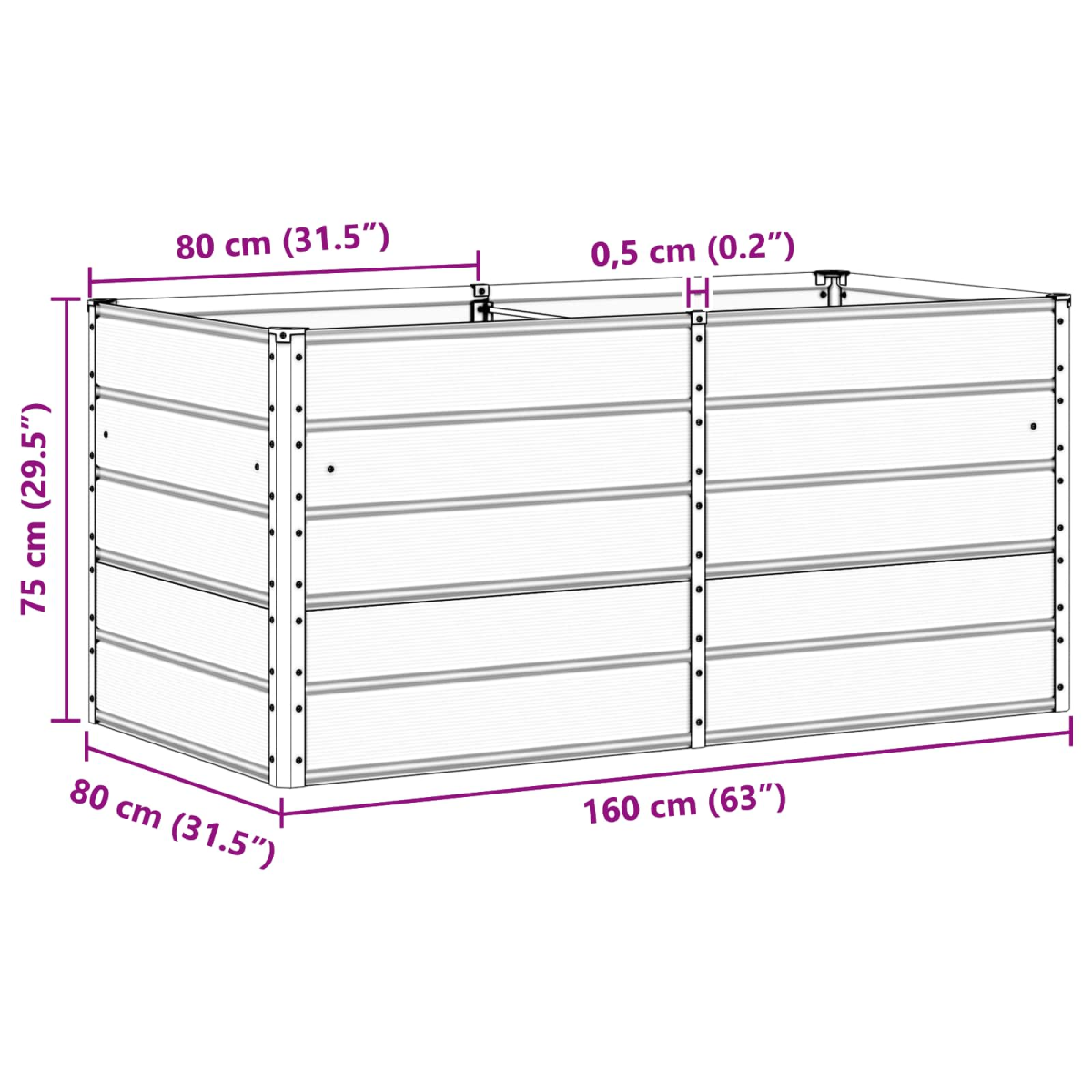 - Overall dimensions: 160 x 80 x 75 cm (L x W x H)