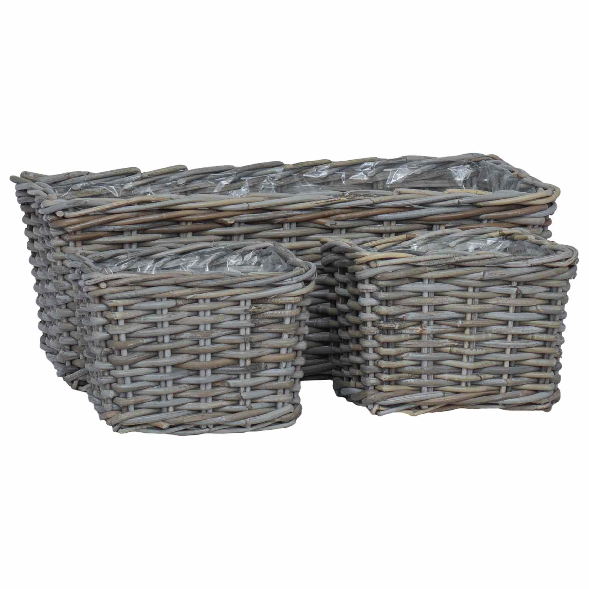This attractive planter basket offers both decorative appeal and functional design, perfect for enhancing interior or garden spaces. Boasting a natural woven texture, its elegant rattan craftsmanship blends seamlessly with various decor styles, creating a tranquil yet stylish aesthetic. Suitable for plant enthusiasts and home decorators alike, it adds a touch of organic charm to any room or patio setting. Material Excellence Showcasing exquisite craftsmanship, this planter basket is crafted from Kubu Rattan, celebrated for its natural beauty and durability. Whether displayed indoors or outdoors, the rattan's visual appeal adds a rustic yet sophisticated element, seamlessly complementing surrounding decor while ensuring lasting use. Smart Design Meticulously designed for versatility, each planter includes a removable waterproof plastic liner, protecting surfaces from excess moisture and simplifying plant care. The sleek, rectangular shape is adaptable to various placement options, making it a prime choice for diverse decorative needs, whether showcasing vibrant greenery or housing storage essentials. Multiple Sizes The set includes a large planter and three smaller ones, each perfectly proportioned for diverse planting arrangements or storage needs. From spacious rooms to cozy corners, these well-sized baskets provide both visual interest and functional flexibility, enhancing both aesthetic and practical utility in any environment. Care Instructions Maintaining these is hassle-free with simple guidance: wipe with a dry cloth to remove any dust or debris. Regular dusting with a soft cloth keeps them looking pristine and ensures enduring beauty, providing a low-maintenance solution for busy lifestyles or relaxed environments. Decorative Versatility Perfectly suited for indoor or outdoor use, these baskets offer unmatched versatility. Ideal for living rooms or gardens, they enhance any space with their natural texture and understated elegance, making them great additions for anyone looking to enrich their surroundings with natural decor accents.