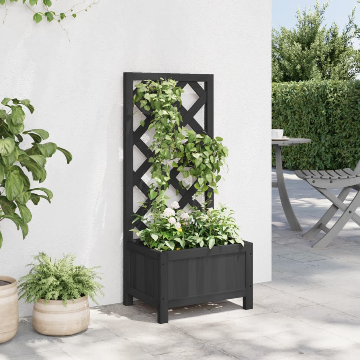 This wooden planter with trellis is an excellent choice for climbing plants in your garden, patio and terrace. Solid fir wood: Solid fir wood is a beautiful and durable material that maintains its integrity even when exposed to moisture. It does not dry out or warp, making it a reliable choice.Sufficient space: This garden planter is wide and deep enough, providing ample room for growing a variety of plants, flowers, and vegetables. Additionally, the hollow bottom allows for good ventilation and drainage.Trellis fence panel: The patio planter comes with a beautiful trellis fence panel that is perfect for supporting climbing and hanging plants like roses, ivy, or vines. It also adds a stunning visual feature to your outdoor space.Wide applications: This outdoor planter has a natural and stylish appearance, perfect for any garden. It can be placed in a patio corner or leaned against a wall or fence. Good to know:The delivery includes the planter only; the liner is not included.