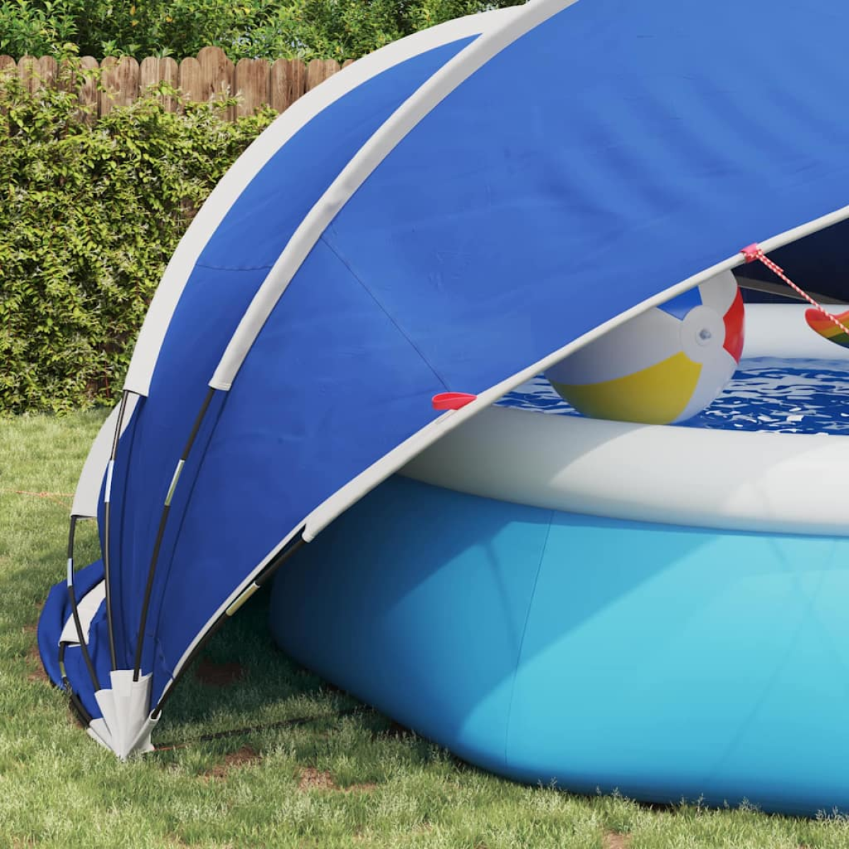 This versatile Foldable Pool Dome serves as the perfect companion for your outdoor pool sessions, providing both protection and convenience. Suited for modern backyards, the dome features a sleek silhouette with minimal aesthetics, ensuring it blends seamlessly with your outdoor environment. With its ultra-smooth texture, this dome offers an inviting appearance and serves everyone seeking a clean, trouble-free pool environment. Its seamless folding attributes make it an essential item for maintaining and protecting your pool, enhancing its overall appeal. Robust Materials: Built with UV-resistant fiberglass and integrated with water- and windproof technologies, this dome safeguards your pool from harsh sun and elemental exposure. The resilience of its construction means prolonged use without degradation, ensuring your pool area remains pristine with minimal effort. Comprehensive Components: The pool dome encompasses all necessary accessories including a complete set of flexible fiberglass poles, a practical carry bag, and stabilizing guy lines. With everything included, you'll ensure an easy installation and added security in breezy conditions. Functional Features: Easy folding and unfolding are hallmarks of this dome, thanks to its manual mechanism implementable without mechanical assistance. Amplify your pool's practicality while reducing heat loss between uses, enhancing energy efficiency. Seasonal Versatility: Crafted for ideal use in summer and camping seasons, this dome distinctly suits garden and terrace settings, adapting to various environments effortlessly. Its compact storage capacity offers unmatched portability, tailored for those who appreciate both adventures and leisure. Maintenance-Free: Designed specifically for outdoor indulgence, this pool dome mandates minimal maintenance. Simply avoid using it in unfavorable weather like severe winds or rain, preserving its condition for repeated seasonal enjoyment and carefree fun.