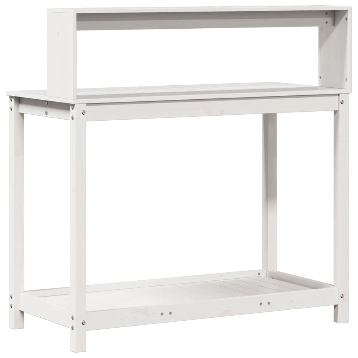 This wooden potting table is perfect for organising and displaying your potted plants at home, in a garden, on a patio, or on a terrace. Solid pine wood: The potting bench table is made of solid pine wood for sturdiness and stability. Solid pine wood is a beautiful natural material. Pine wood has a straight grain, and the knots give the material its signature, rustic look.Ample storage space: The potting workbench with open shelves provides sufficient space for related goods such as small gardening tools, soil, fertilisers, etc.Ventilated: This outdoor potting bench with a slat design allows water flow, making it not easy to rot and ensuring a long service life.Multiple applications: The potting station can not only bring a sense of nature to your space but can also be a perfect addition to your courtyard, garden, greenhouse, and more. Good to know:To make sure your outdoor furniture stays beautiful, we recommend protecting it with a waterproof cover.