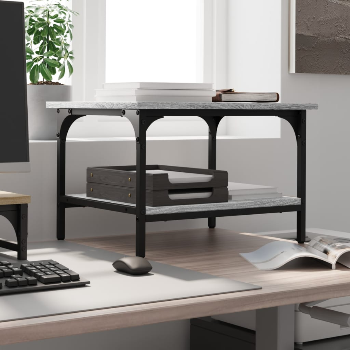 This 2-tier printer stand provides easy access to everything, keeping your workplace organised and tidy. Durable material: The engineered wood is of exceptional quality with smooth surface and also features strength, stability and resistance to moisture. The steel frame ensures sturdiness and stability. 2-tier printer stand: The top shelf is designed for printers, and fax machines, with storage space underneath for files, paper, books, and other office supplies. Keep everything easily reached and make your workplace organised and tidy. Easy to move: This printer table has 4 wheels and 2 of them are lockable, making it move flexibly and park stably at any time. Multifunctional organiser: The file organiser can be used not only as a printer stand but also as a bookshelf, nightstand, coffee stand, side table, etc. It can also be widely used in the kitchen to arrange condiment jars, kitchenware, plates, and dishes. Flexible installation: This computer printer stand can be used in two ways. You can place it on the floor with adjustable feet for stability on uneven surfaces or attach the wheels for easy movement.