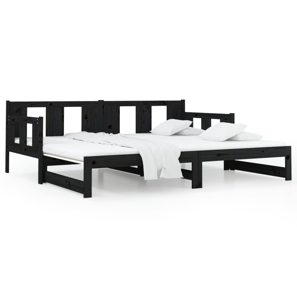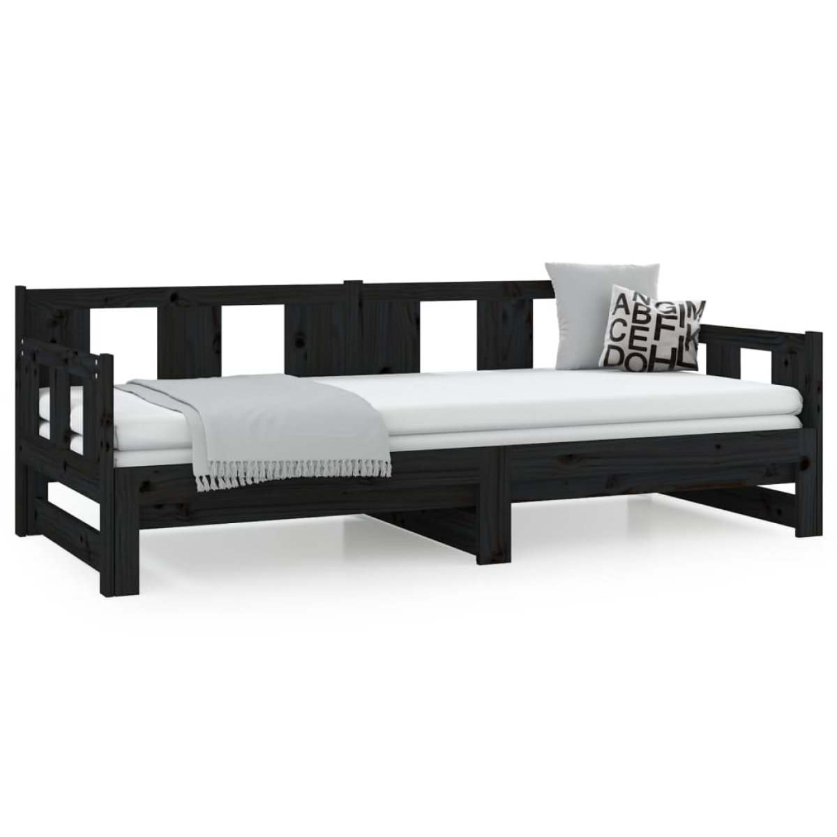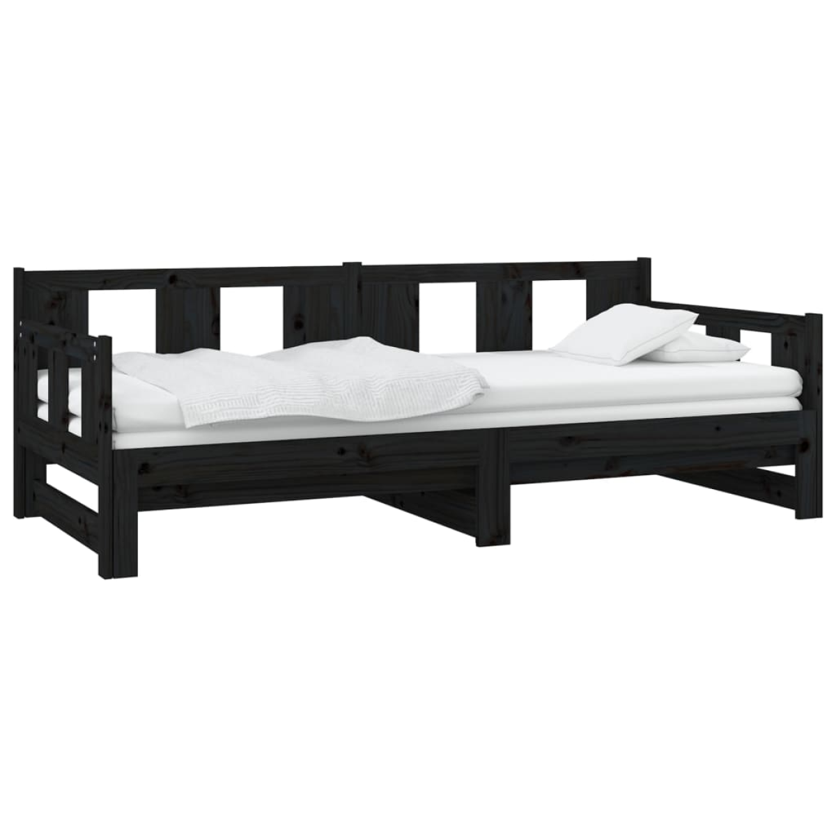 In addition to serving as a sofa during the day, this multifunctional day bed also serves as a bed at night, making it an excellent choice for overnight guests. No matter where it is placed, this practical sofa bed is sure to catch the eye! Solid pine wood: Solid pine wood is a beautiful natural material. Pine wood has a straight grain, and the knots give the material its signature, rustic look.Convertible design: With a pull-out trundle bed, the wooden day bed can easily be converted into a couch during the day and a comfortable bed at night.Space-saving function: This solid wood day bed maximises the available floor space while providing sleeping space for two people, making it an ideal choice for people with limited living space. Note:The delivery includes a daybed frame only. The mattress is not included. You can check our shop for the matching mattresses.
