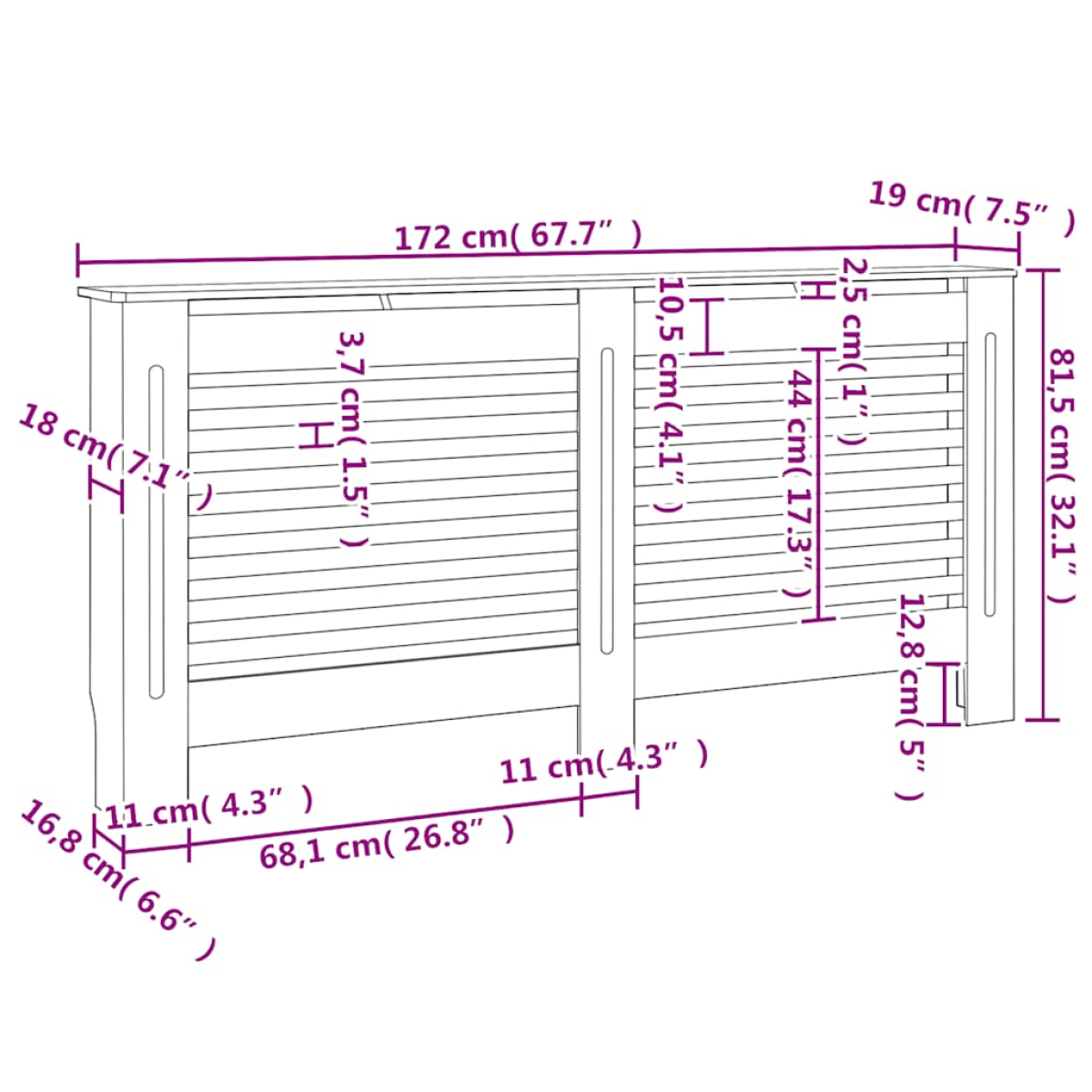 vidaXL Radiator Cover White 172x19x81.5 cm MDF