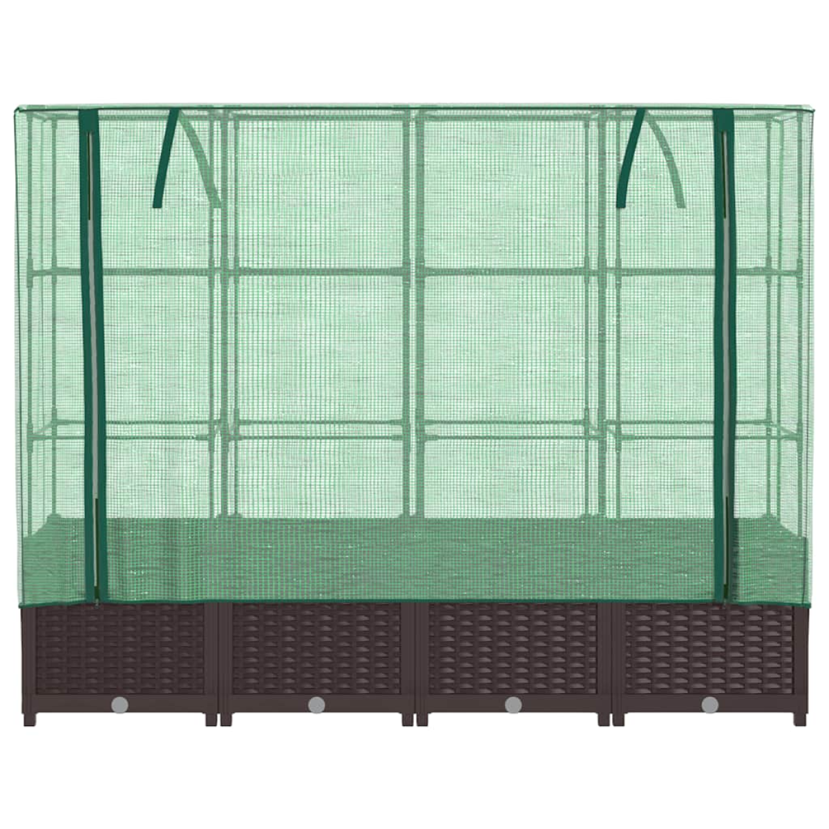 This raised bed with a greenhouse cover provides lots of growing space with its sturdy supporting frame.Sturdy construction: The raised bed, constructed from polypropylene, features a sturdy iron tube frame on top, enabling plants to grow and climb through it.Functional cover: The raised bed features a water-resistant polyethylene cover that protects your plants from extreme temperatures and keeps out insects, birds, and small animals.Practical design: The raised bed includes zippers for ventilation, allowing you to adjust the cover as needed. Additionally, it features ropes at the top, making it easy to secure the net to the tube.Rattan look design: The raised bed, featuring the rattan look design, adds a touch of natural charm to your outdoor living space.Wide applications: The raised bed provides ample space for your plants, vegetables, herbs, and flowers. You can use it in gardens, courtyards, balconies, and so on.