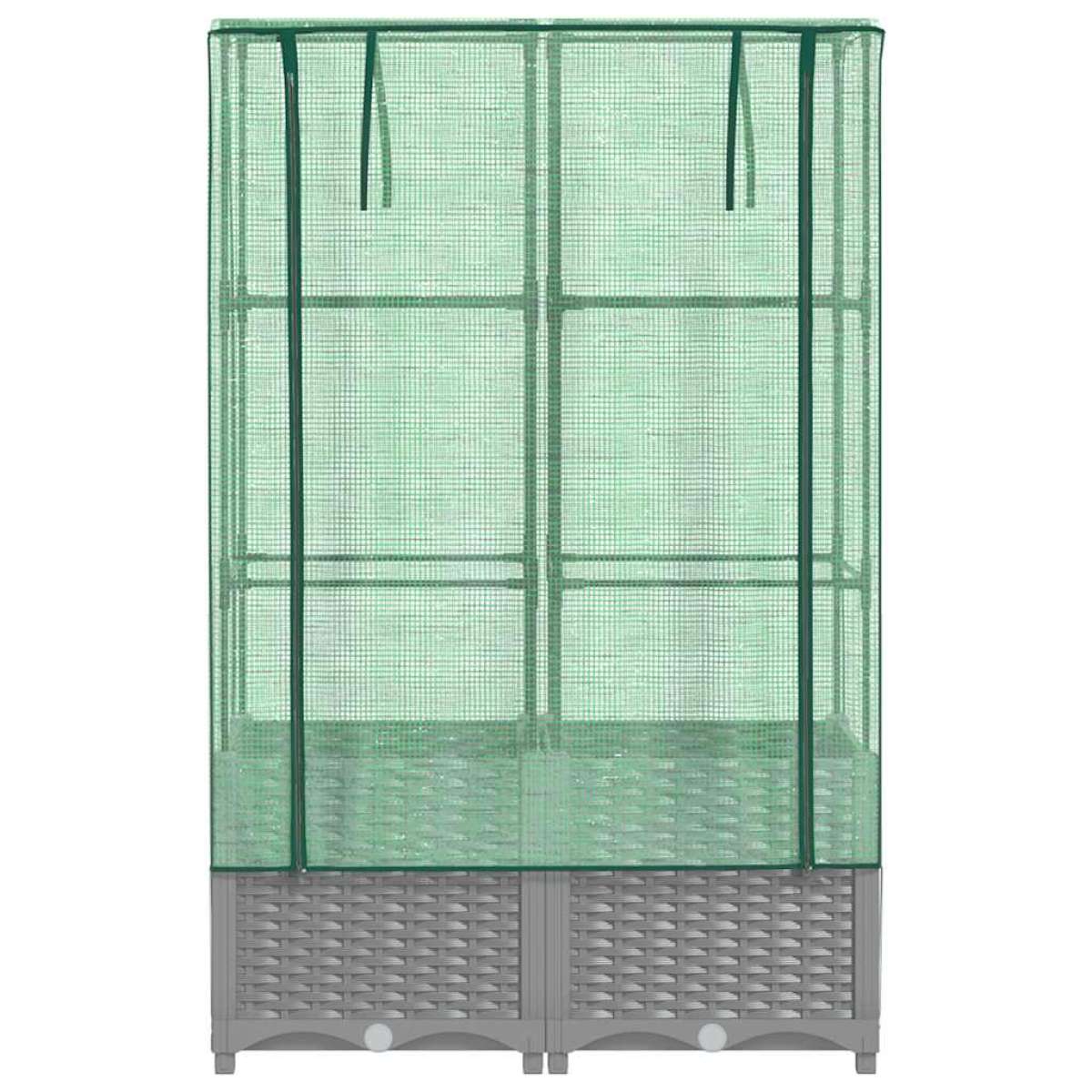 This raised bed with a greenhouse cover provides lots of growing space with its sturdy supporting frame.Sturdy construction: The raised bed, constructed from polypropylene, features a sturdy iron tube frame on top, enabling plants to grow and climb through it.Functional cover: The raised bed features a water-resistant polyethylene cover that protects your plants from extreme temperatures and keeps out insects, birds, and small animals.Practical design: The raised bed includes zippers for ventilation, allowing you to adjust the cover as needed. Additionally, it features ropes at the top, making it easy to secure the net to the tube.Rattan look design: The raised bed, featuring the rattan look design, adds a touch of natural charm to your outdoor living space.Wide applications: The raised bed provides ample space for your plants, vegetables, herbs, and flowers. You can use it in gardens, courtyards, balconies, and so on.