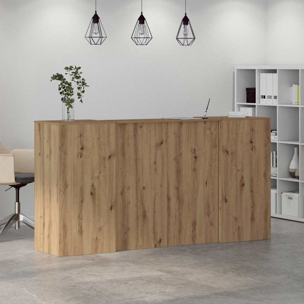 Enjoy seamless interactions, ample storage, and a versatile design with this reception desk featuring a built-in counter, making it perfect for various settings! Stable and durable material: Engineered wood is a durable and stable material with a smooth surface that is resistant to moisture, warping, and splitting, making it a reliable choice for a variety of projects.Thoughtful design: The high counters and side panels of the reception desk ensure discreet interactions, providing a balance of functionality and privacy for both staff and visitors.Ample storage space: The front desk and cabinet offer ample storage space for keeping your office supplies, documents, personal items and other essentials well organised and within easy reach.Versatile application: This checkout counter is perfect for a variety of environments, including corporate offices, hotel lobbies, medical clinics, and beauty salons, meeting various professional needs.Easy installation: Clear instructions and a simple assembly process make this reception counter desk easy to set up quickly and effortlessly. Warning:To prevent it from tipping over, this product must be used with the provided wall attachment device. Good to know:Screw(s) and plug(s) for inside the wall are not included. Seek and use screw(s) and plug(s) suitable for your walls. If you are uncertain, seek professional advice. Read and follow each step of the instruction carefully.