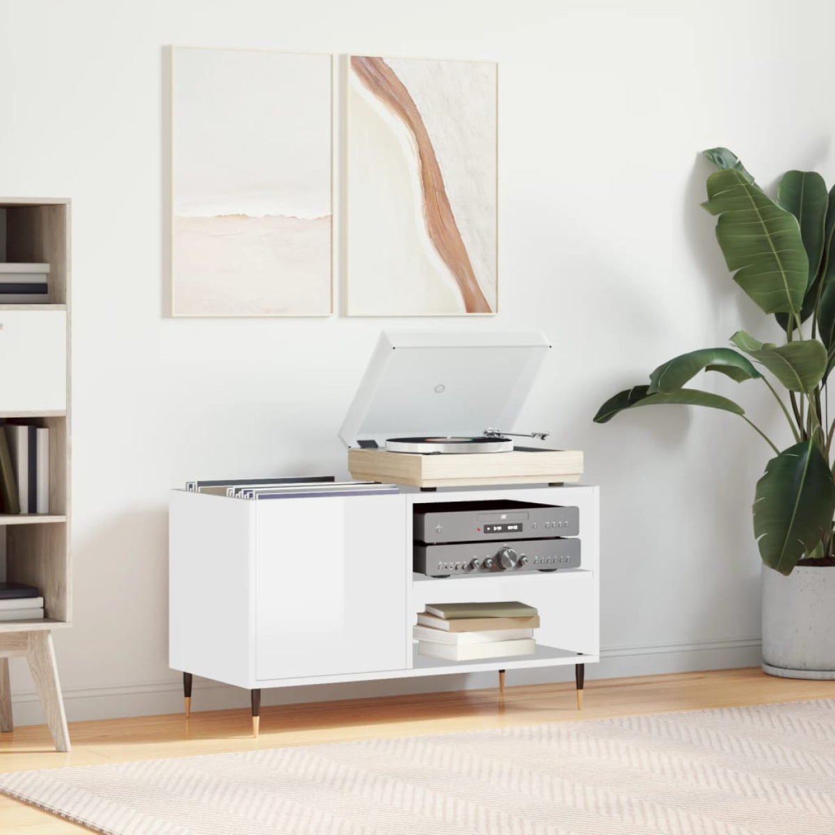 vidaXL Record Cabinet High Gloss White 85x38x48 cm Engineered Wood
