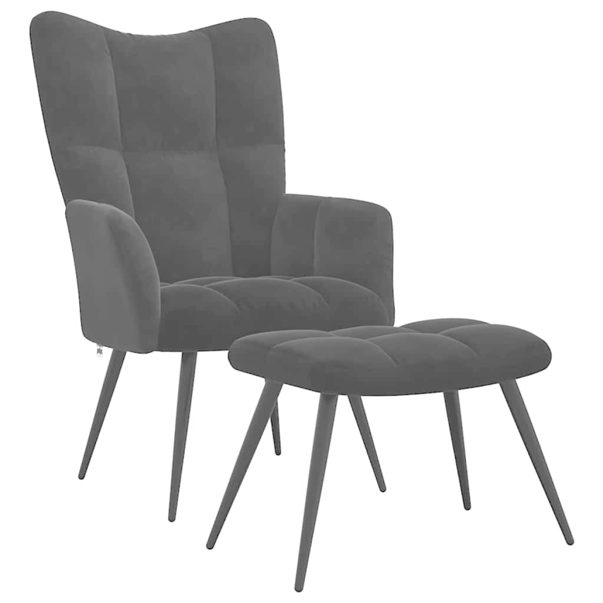 This Modern Relaxing Chair with Footstool is an elevated piece of seating furniture designed for indoor use, primarily within a contemporary setting like a living room or lounge area. The piece combines simplicity, functionality, and elegance, encapsulated within a frame of clean lines and minimal ornamentation. Visualize it as a luxurious addition to a modern home, with its velvety finish providing an aesthetic softness that invites relaxation. The chair and accompanying footstool ensure a comforting seating experience, supported by plush cushioning and strategically designed armrests and backrest for an immersive, restful seating arrangement. Luxurious Materials: Crafted entirely from soft velvet, the luxurious texture accentuates its modern appeal while ensuring a gentle touch against the skin. The material complements its sleek design, adding a plush feel and visual depth. The velvet covering assures resilience against daily wear, making it an ideal choice for frequent use. Comfort Maximized: Thickly padded with foam, the armchair's seat and backrest provide extraordinary cushioning. The use of foam enhances comfort levels, allowing you to sink into its embrace after a long day. The plush armrests further add to this comfort, allowing for extended periods of relaxation without discomfort. Sturdy Structure: Built with a steel frame, the armchair assures dependable stability and robust support. The durability of the steel frame allows it to withstand frequent use while maintaining its rigid form. This sturdy foundation ensures long-lasting function and performance in any setting. Functional Design Features: The chair boasts a classic modern style, with streamlined features that accentuate its aesthetic simplicity. With tapered legs and a sleek structure, it easily complements diverse interiors, from contemporary to traditional setups. Easy Maintenance: For cleaning, simply dust regularly with a soft, dry cloth. Avoid harsh chemicals to preserve the visual and tactile quality of the velvet. This minimal upkeep ensures the chair remains a timeless piece in your living arrangement.