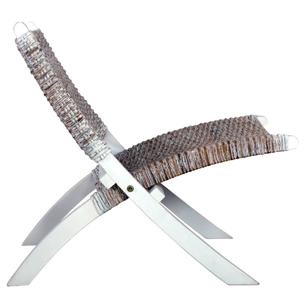 vidaXL Relaxing Chair White Natural Kubu Rattan and Solid Mahogany Wood