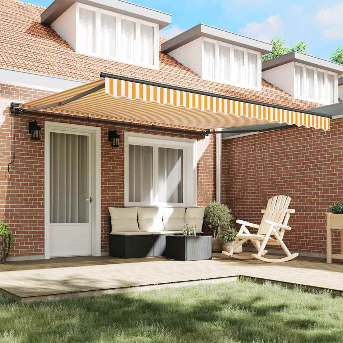 This Modern Retractable Awning is the perfect addition to any garden or terrace, offering a stylish and functional solution for sunshade. With its sleek, clean lines and minimalist design, it enhances the visual appeal of any outdoor space. Whether you're hosting a summer gathering or seeking a tranquil retreat from the sun, it caters to various needs. Its retractable feature allows for flexible shade control, providing comfort during sunny days. Designed for outdoor use, it seamlessly integrates into garden and terrace environments, complementing modern aesthetics. Durable Materials: Made from a combination of polyester and metal, this awning offers a reliable and robust structure. The polyester fabric ensures durability against daily wear, while the metal frame provides steadfast support, enhancing its longevity in varied weather conditions. Retractable Mechanism: Enjoy adaptable shade with the retractable feature. This versatile design allows for easy extension or retraction, accommodating shifting sunlight throughout the day, making it a user-friendly choice for adjustable outdoor comfort. Weather Resistant: Engineered with UV, water, and fade-resistant properties, this awning maintains its appearance and functionality despite harsh weather elements. This feature ensures users can rely on consistent protection and style. Assembly Details: Requires assembly by two people using a screwdriver. This straightforward setup ensures the installation process is manageable and completed with basic tools, making it accessible for homeowners. Summer Appeal: Specifically designed for seasonal use, this awning enhances the usability of outdoor spaces during vibrant summer months, providing necessary shade from the intense heat and creating an inviting ambiance.