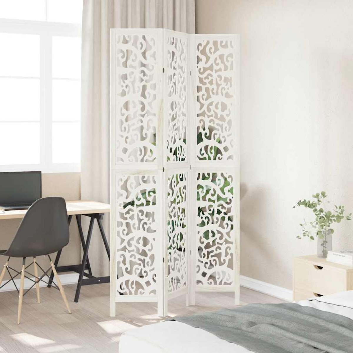 BuytoGive | Product | vidaXL Room Divider 3 Panels White Solid Wood Paulownia