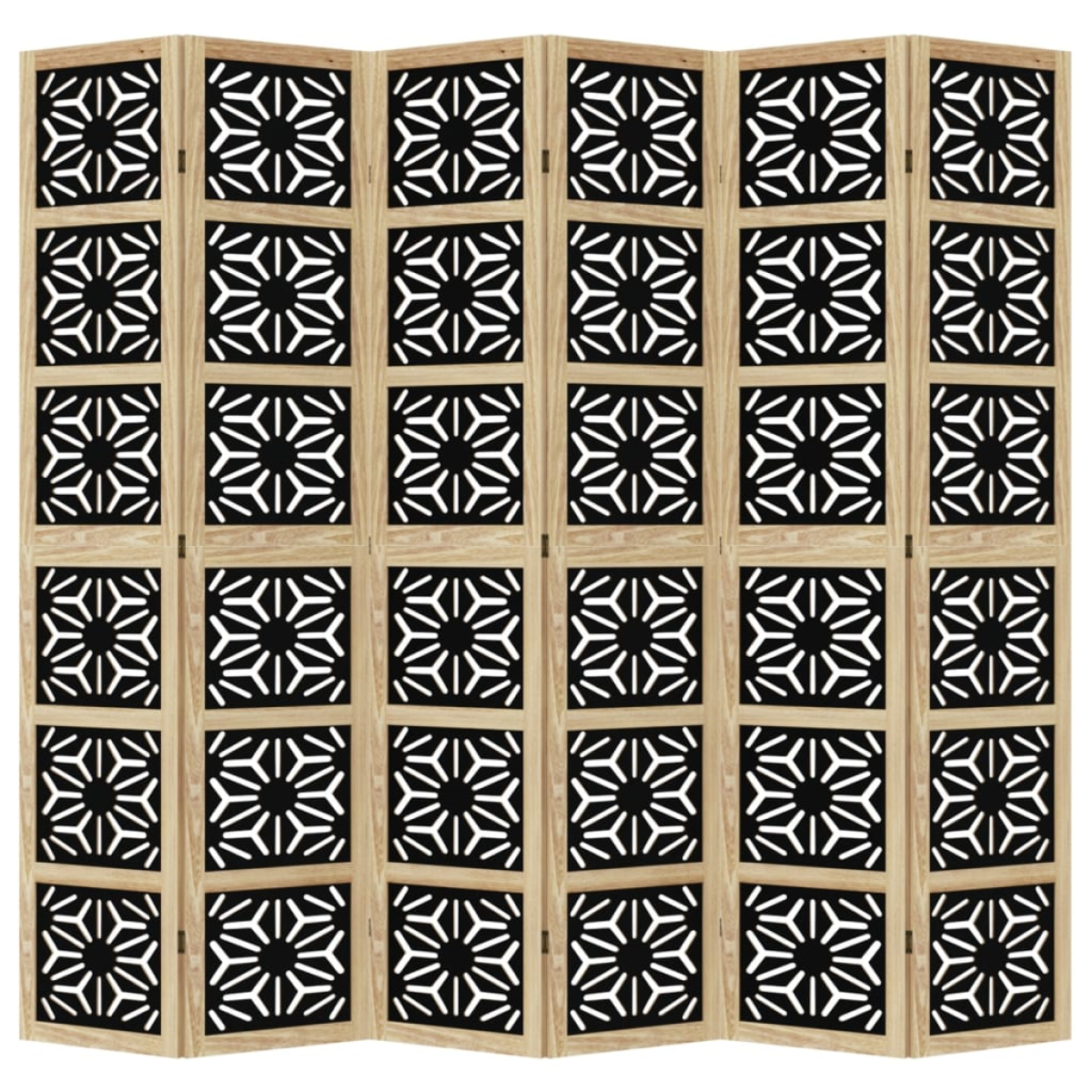 Bring elegance and an eye-catching decorative touch to your space with this charming room divider. Durable and easy to clean: The privacy screen is made from engineered wood, making it easy to clean and durable.Stable frame: The solid paulownia wood frame ensures sturdiness and stability. Solid paulownia wood is a beautiful natural material. Paulownia wood is highly resistant to bugs and rotting.Flexible and easy to fold: Each partition is connected by 3 metal hinges and the upper and lower panels are connected by hidden 2-in-1 hinges. So the room divider panel can be easily folded to some extent according to your needs to save space.Multipurpose: The room partition is great for creating private space in your bedroom, living room, office and other interiors. You can also place it in front of a window to block intense sunlightAttractive looking: Featuring a geometric cut-out design, this folding room divider adds character and decoration to the space. Warning:Only for indoor use.