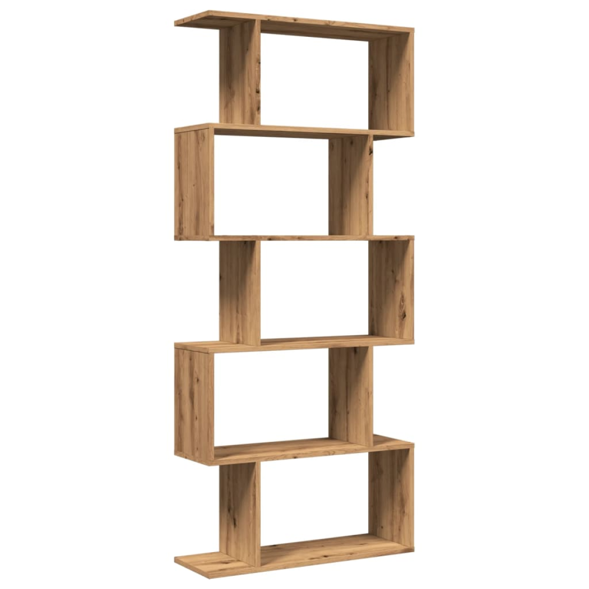 The room divider bookcase blends a geometric shape design with storage, perfect for organizing your space with style! Stable and durable material: Engineered wood is a durable and stable material with a smooth surface that is resistant to moisture, warping, and splitting, making it a reliable choice for various projects.Ample storage: The bookshelf features staggered storage compartments, offering ample space for your books or decorations. You can also choose to display smaller items on the edge platforms, making optimal use of space while keeping your belongings neatly organised.Flexible placement options: The storage shelf can be positioned with either its width or height on the ground, offering different room layout options.Versatile applications: The bookshelf can also be used as a room divider, easily fitting into any style of room. You can place it in the living room to display decoration, in the study to store books and documents, in the bedroom to store everyday items, and in the basement to store bits and bobs.Easy maintenance: Thanks to its smooth surface, the storage bookshelf is easy to clean with a damp cloth and requires less maintenance. Warning:To prevent it from tipping over, this product must be used with the provided wall attachment device. Good to know:Screws and plugs for inside the wall are not included. We advise to find and use screws and plugs suitable specifically for your walls. If you're not sure, you can consult with a professional. Please read and follow each step of the instructions.