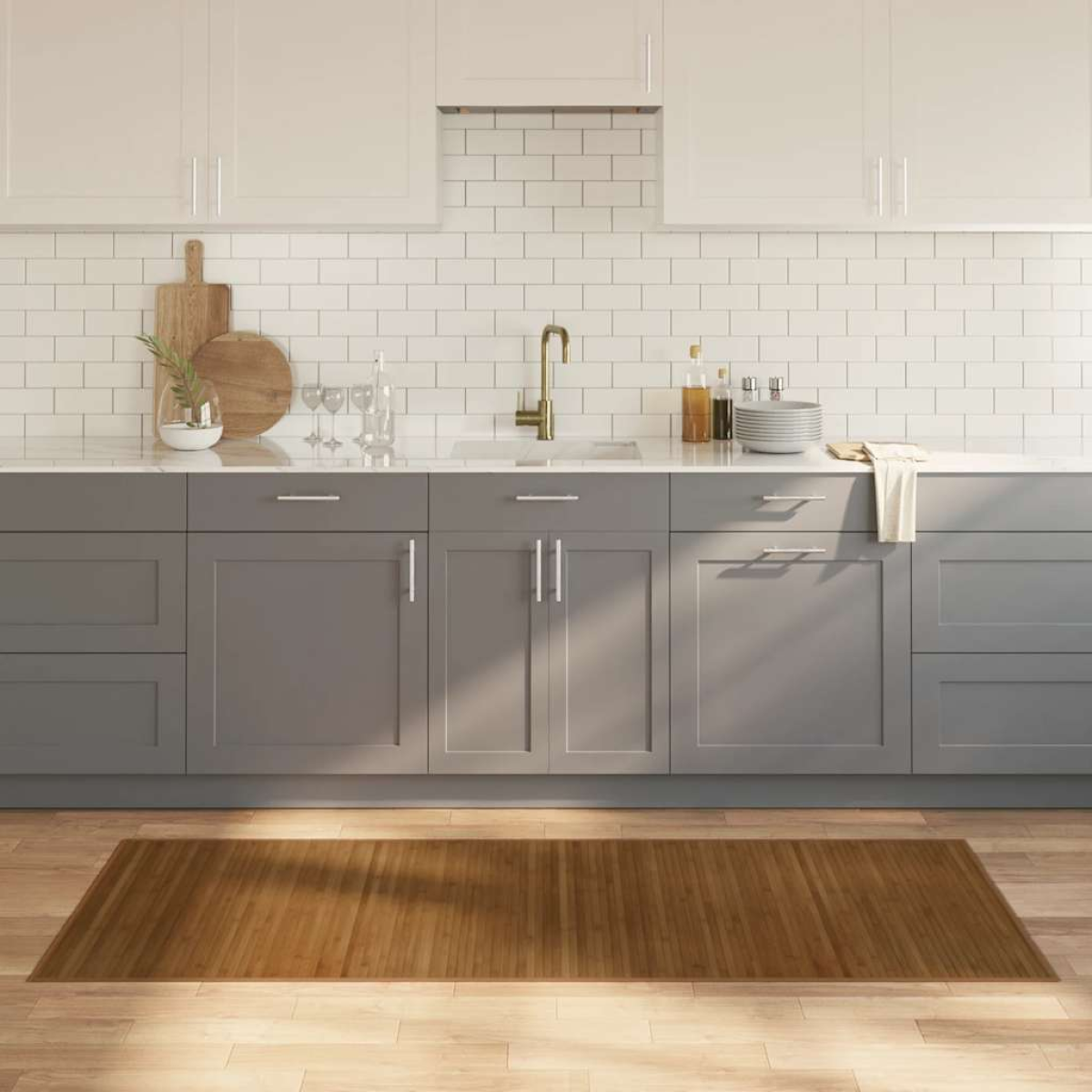 Get the natural look in your living room! This modern bamboo rug will make a great addition to any decor. Durable and long-lasting: As a natural material, bamboo boasts good breathability and a low odour. These qualities make bamboo rugs durable, water-resistant, and long-lasting.Anti-slip backing: This rug can be firmly fixed to the ground with anti-slip backing to protect you from slipping.Easy to clean and store: Made of natural, strong bamboo, this rug is easy to clean. It also can be rolled up for easy storage and transport.Neutral tones: Its neutral tones will blend well with a variety of interior styles. Good to know:The wood/bamboo is a natural product and can show imperfections.Because it's a natural product, the width of bamboo slat may vary with +/- 1 mm and small differences are common.
