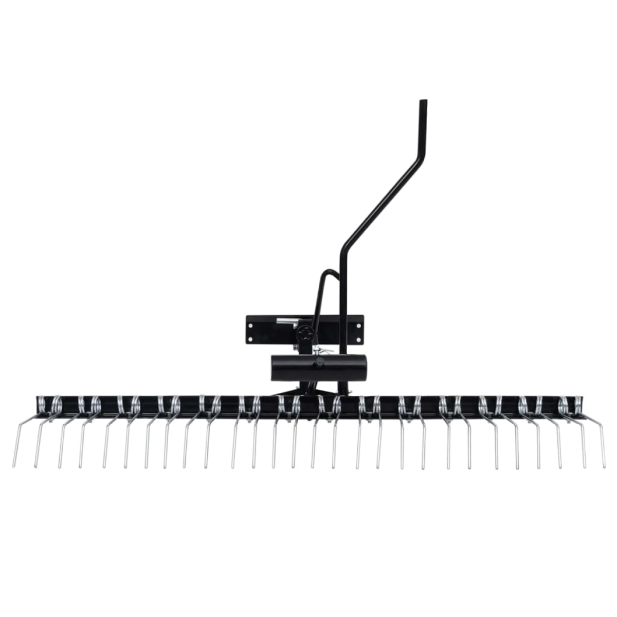 The scarifier for the ride-on mower can remove moss and weeds easily, and efficiently scarifying large lawn surfaces to help the grass grow more densely. Durable material: Steel is an exceptionally hard and strong material. It offers sturdiness and stability. Galvanisation provides better protection against corrosion and is useful for products that'll be used outdoors as well as in harsh environments.Efficient moss and thatch removal: The lawn aerator effectively dislodges various types of debris such as stems, clippings, runners, roots, and unrotted leaves, making it a suitable option for large gardens. This process allows air, water, and fertilizer to reach the roots, leading to a healthier lawn.Fast and effective scarifying: With the 14 twin durable spring tines and a wide 109cm scarifying width, the lawn scarifier offers a quick and effective way to scarify your lawn. The spring tines are heat-treated for extra strength, ensuring they can handle tough jobs.Easy connection: With the coupling device, the moss remover can be easily and safely connected to the ride-on mower or lawn tractor.