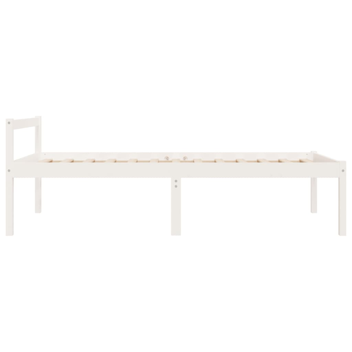 Take the modern route to your bedroom with this wooden senior bed! It makes a practical and decorative addition to your interior. Solid pine wood: Solid pine wood is a beautiful natural material. Treat the surface with oil, wax, lacquer, or a glazing finish for a stronger surface and easy cleaning. Pine wood has a straight grain, and the knots give the material its signature, rustic look.Suitable for the elderly: The bed frame is easy for seniors to get in and out of due to its 45 cm seat height.Extra storage space: The high bed has extra space underneath to store boxes for organising your clothes, toys, or quilts.Sturdy slats: The plywood slats provide good weight distribution, ensuring that the mattress stays in place with every twist and turn of your body during sleep.Comfortable headboard: The classic headboard let you rest comfortably while reading or watching a movie. Note:The delivery includes a bed frame only. The mattress is not included. You can check our shop for the matching mattresses.This bed frame is suitable for a mattress measuring 75 x 190 cm (2FT6 Small Single).