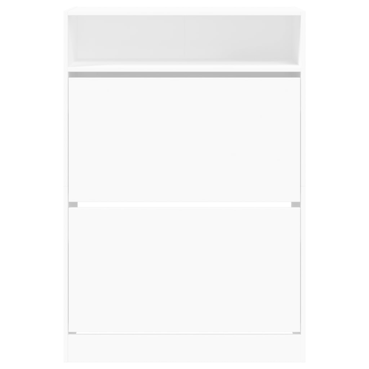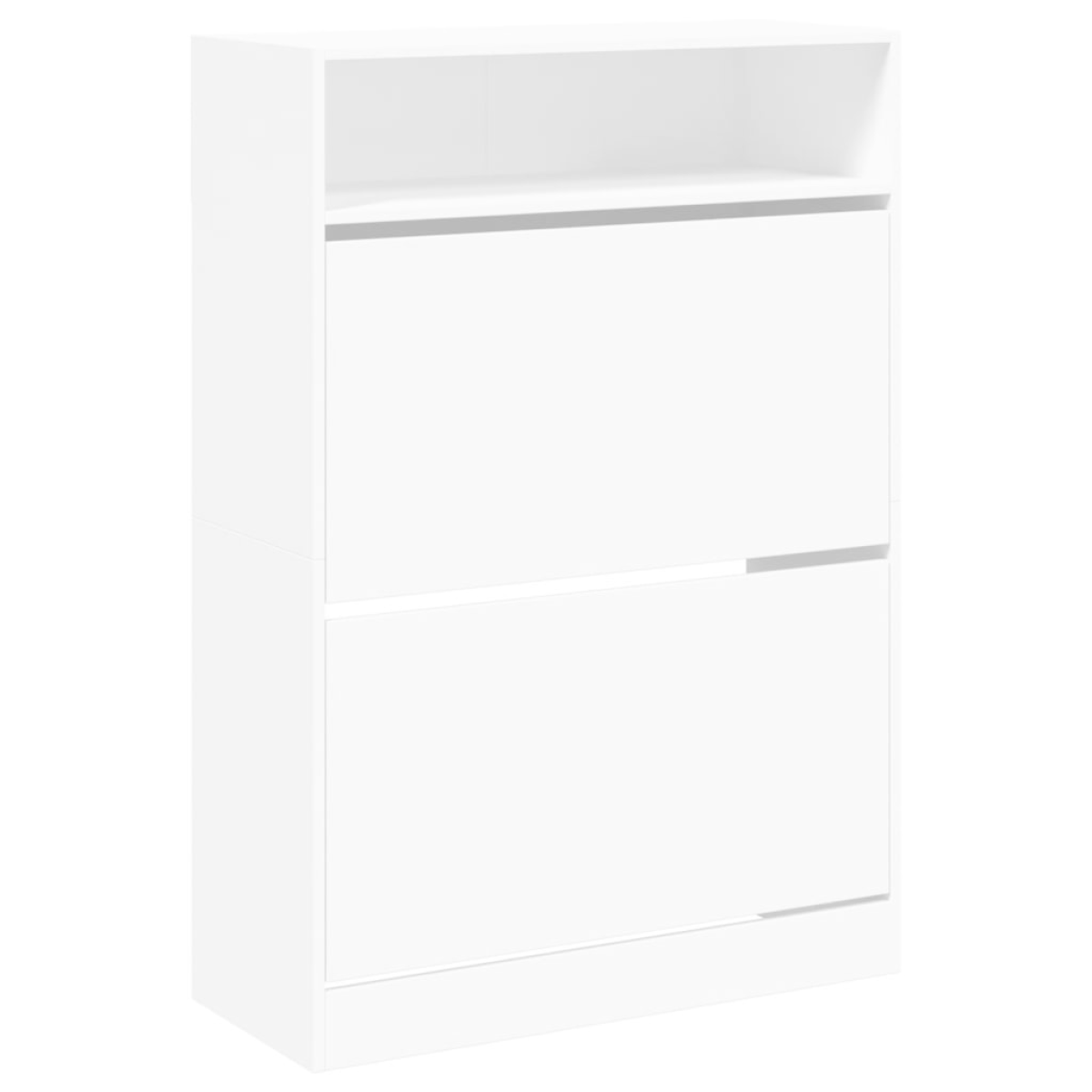 Keep your shoes well-organised and always at hand with this shoe cabinet! Durable material: The engineered wood is of exceptional quality with a smooth surface and features strength, stability and resistance to moisture.Space-saving design: The shoe rack makes optimal use of vertical space and takes up little floor space, which is especially suitable for small rooms.Ample storage space: The shoe storage cabinet features flip-drawers that keep your shoes invisible to offer a clean and clutter-free living area.Trendy design: The shoe cupboard features clean lines and a minimalistic look that add a modern touch to your existing decor. Warning:To prevent it being overturned, this product must be used with the provided wall attachment device.