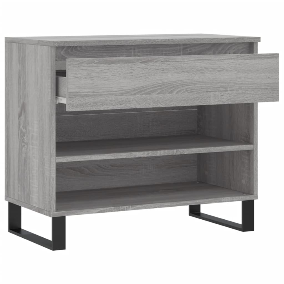 Keep your shoes away from dust and cluttering to create a tidy environment with this elegant shoe cabinet! Durable material: The engineered wood is of exceptional quality with smooth surface and also features strength, stability and resistance to moisture. Made of engineered wood, the shoe rack is easy to clean.Ample storage space: The shoe storage has 1 drawer and 2 open compartments, providing ample storage space for keeping your shoes and other items well organised.Sturdy top: The top of the shoe cupboard is ideal for displaying decorative objects, photo frames, or potted plants.Metal legs: The metal legs add a modern and calm style to your interior while ensuring stability. Warning:To prevent it being overturned, this product must be used with the provided wall attachment device.