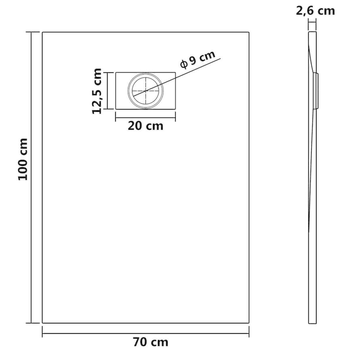- Standard dia. 9 cm drain opening (drain not included)