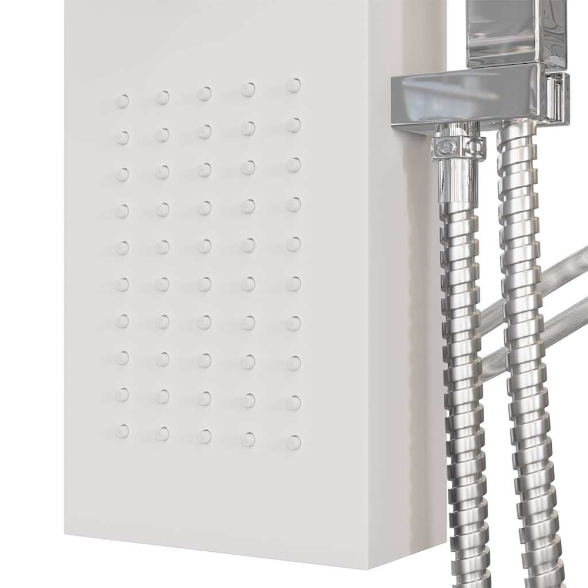 - 150 jets with a silicon nozzle each: 50 on the rainfall showerhead and 50 on each set of body massage jets