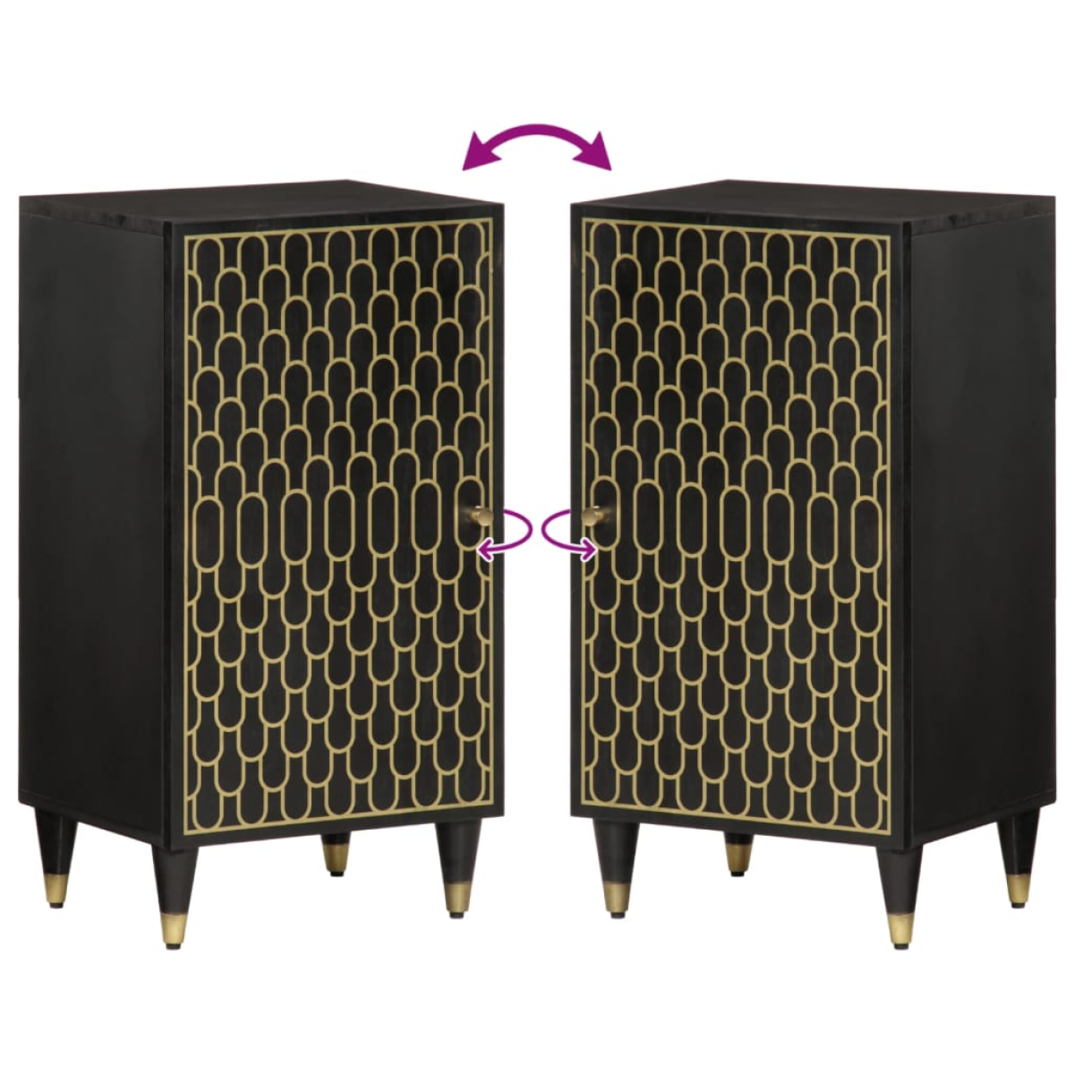 This side cabinet, featuring a timeless look, is meant to be an excellent addition to your home. Solid mango wood: Solid mango wood is a strong, tropical hardwood that makes sturdy furniture. Its beautiful wood grains make every piece of furniture slightly different from the next. Made of solid mango wood, the cabinet is durable and stable.Ample storage space: The cupboard offers ample storage space for keeping your various daily essentials well-organised and within easy reach.Displaying function: The top of the storage cabinet is great for displaying your decorative items, photo albums or small plants.Wooden feet: The wooden feet give the product a natural and pleasant look while ensuring stability. It can blend well with any interior decor.Hand-carved design: This home organiser with hand-carved patterns brings the luxury of elegant charm to your interior, being the focal point of your room. Good to know:Each item is unique with variations in colours and grains. The delivery is random, ensuring the exclusivity and individuality of your product. Warning:To prevent it from tipping over, this product must be used with the provided wall attachment device.