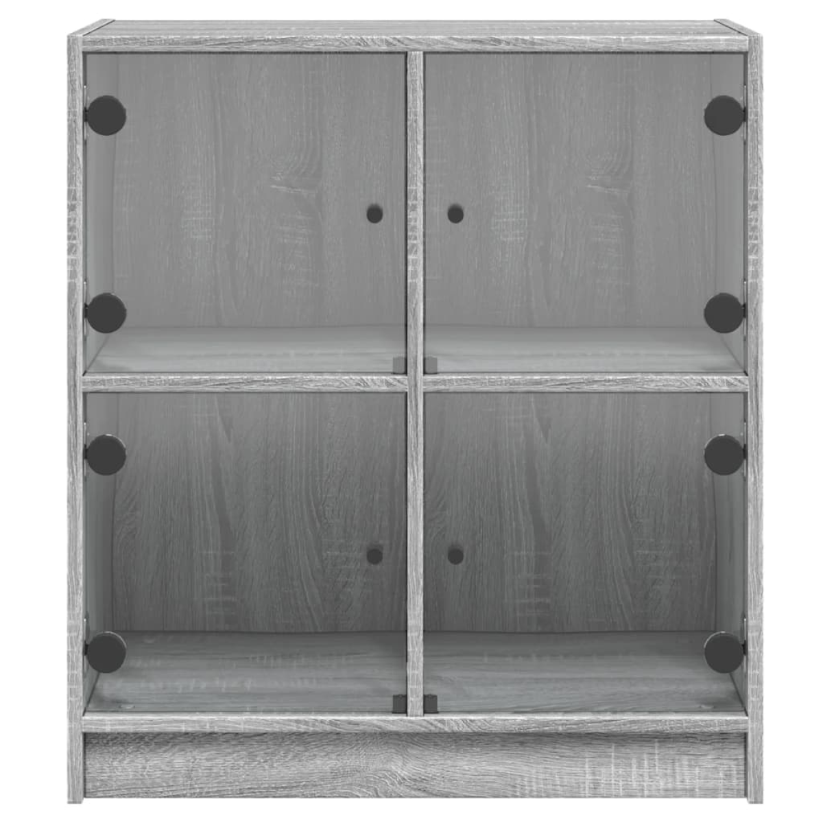 This side cabinet, featuring a timeless look, is meant to be an excellent addition to your home. Durable material: The engineered wood is of exceptional quality with smooth surface and also features strength, stability and resistance to moisture.Ample storage space: The cupboard offers ample storage space for keeping your various daily essentials well-organised and within easy reach.Displaying function: The top of the storage cabinet is great for displaying your decorative items, photo albums or small plants.Practical glass doors: Keep your space clutter-free by hiding small essentials behind the doors of the cabinet. In addition, the glass doors allow you to see inside the storage cabinet to display items beautifully. Warning:To prevent it from tipping over, this product must be used with the provided wall attachment device.