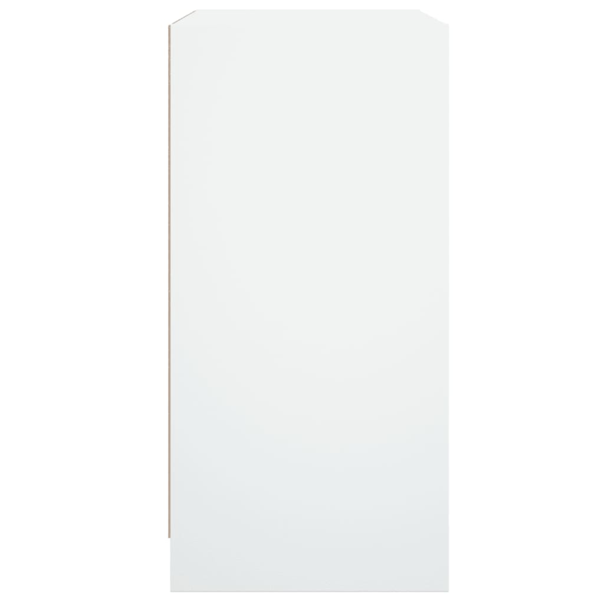 This side cabinet, featuring a timeless look, is meant to be an excellent addition to your home. Durable material: The engineered wood is of exceptional quality with smooth surface and also features strength, stability and resistance to moisture.Ample storage space: The cupboard offers ample storage space for keeping your various daily essentials well-organised and within easy reach.Displaying function: The top of the storage cabinet is great for displaying your decorative items, photo albums or small plants.Practical glass doors: Keep your space clutter-free by hiding small essentials behind the doors of the cabinet. In addition, the glass doors allow you to see inside the storage cabinet to display items beautifully. Warning:To prevent it being overturned, this product must be used with the provided wall attachment device.