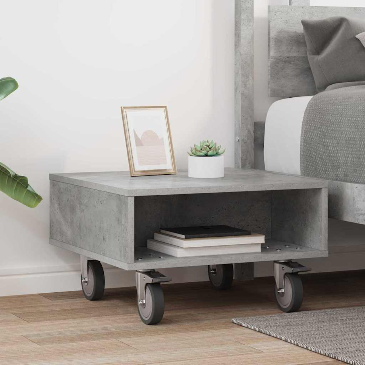 vidaXL Side Table with Wheels Concrete Grey 50.5 x 50 x 30 cm