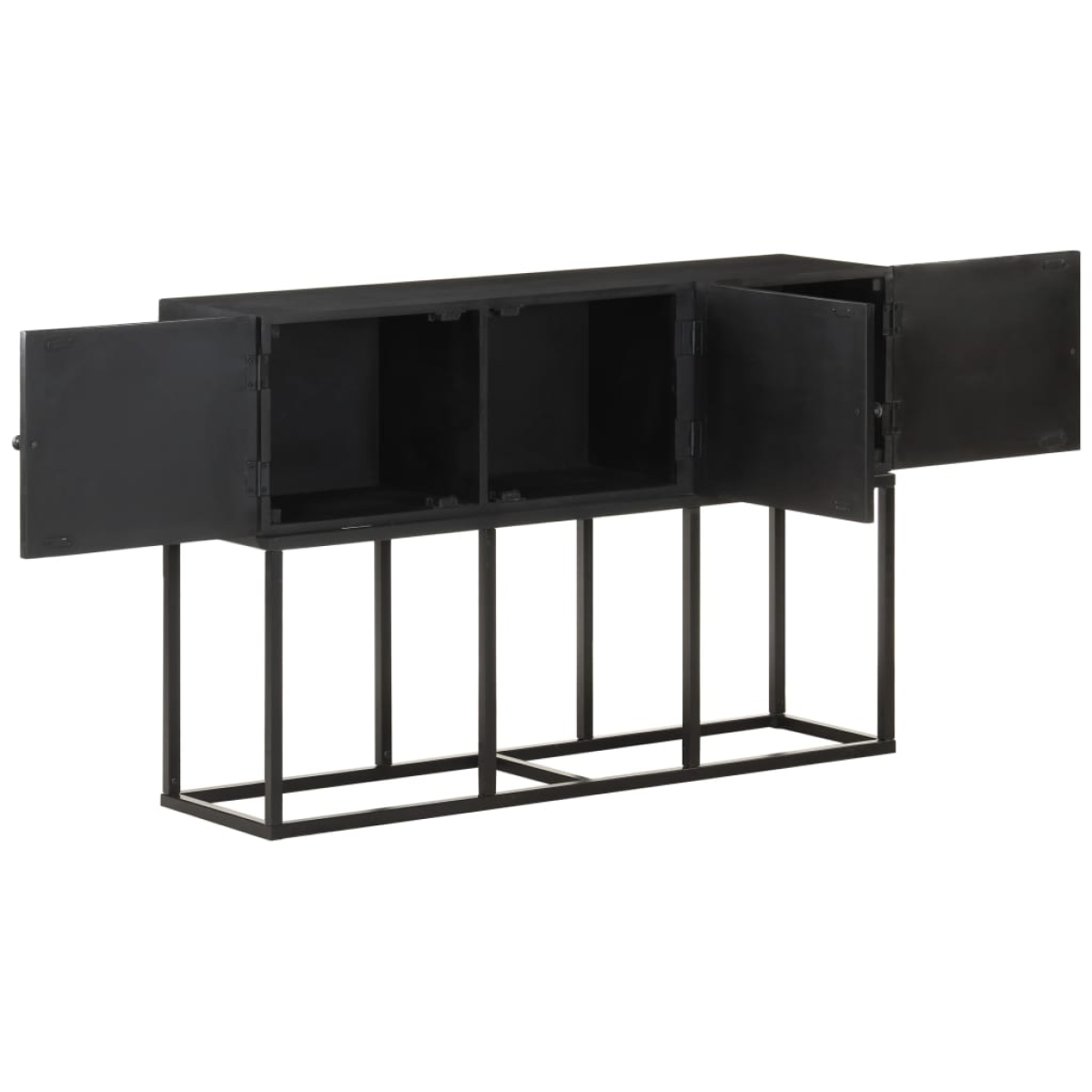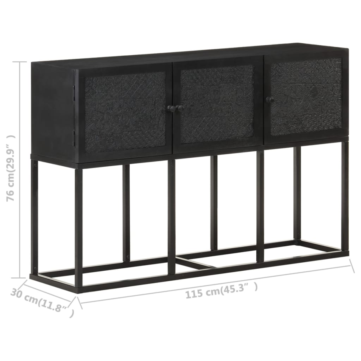 If you're looking for a simple touch of the rustic as well as industrial charm to add to your interior decor, this wooden sideboard will do the trick. The side cabinet is made of solid mango wood, a tropical hardwood with the strength to bear the weight. It also stands the wear and tear of time, making it stable and durable. The powder-coated steel frame also adds extra stability. This cupboard features 3 doors providing ample storage space. Additionally, the sturdy wooden top is ideal for displaying decorative objects such as photo frames, potted plants, vases, etc. Important note: Colours and grains may vary from piece to piece, making each piece unique. The delivery is random, ensuring the exclusivity and individuality of your product.
