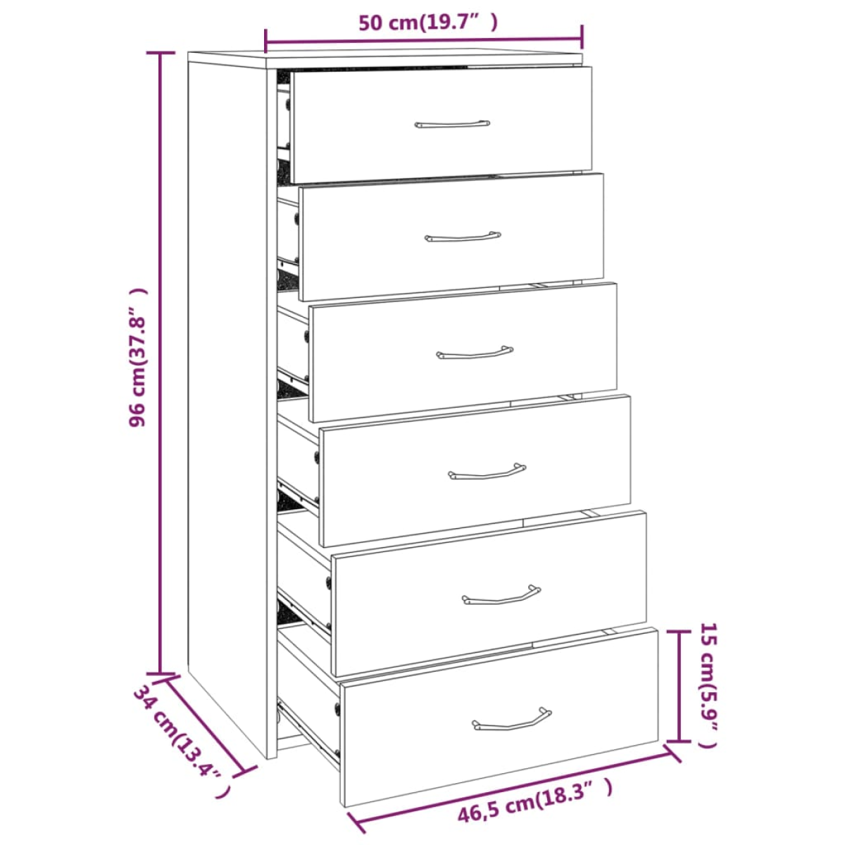vidaXL Sideboard with 6 Drawers Smoked Oak 50x34x96 cm Engineered Wood