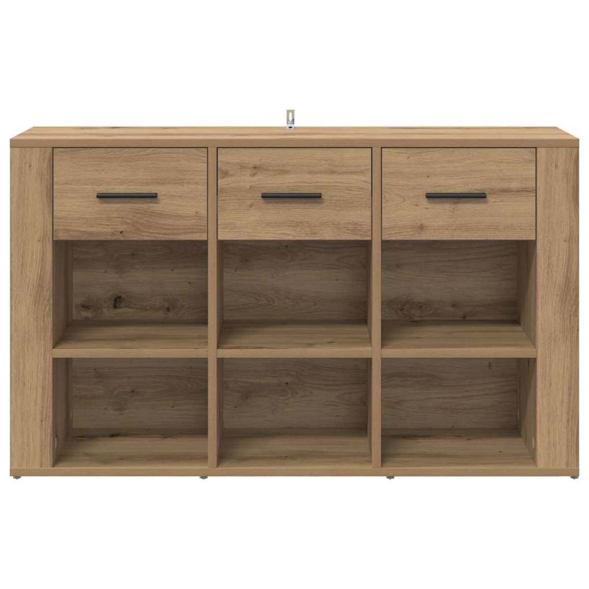 This chic sideboard combines rustic charm with practical storage solutions, offering a stylish and versatile piece for your living room or dining area. Crafted from engineered wood, its textured surface and natural tones beautifully complement any décor while providing substantial space to store or display your essentials. Sturdy Construction Engineered wood craftsmanship ensures long-lasting durability while maintaining a sophisticated appearance. It's designed to withstand daily use, providing reliable support for items placed on its surface or inside its compartments. Generous Storage Space Featuring a collection of compartments, drawers, and board shelves, this sideboard offers ample room to organize dinnerware, linens, or decorative pieces. Shelves crafted from engineered wood offer reliability, while partitions prevent clutter. Stylish Rustic Design With a natural finish and matte black details, this sideboard exudes rugged elegance, making it a fitting addition to a rustic or modern setting. Its attractive design effortlessly enhances the aesthetic appeal of your room. Convenient Drawer Function Smooth ball-bearing slides make the drawers easy to open, providing a effortless access to items stored inside. The engineered wood drawers are both functional and durable, handling your storage needs with ease. Effortless Maintenance To maintain its flawless appearance, simply wipe the sideboard with a damp cloth. Easy to clean and care for, this sideboard is designed for longevity, staying beautiful with minimal upkeep.