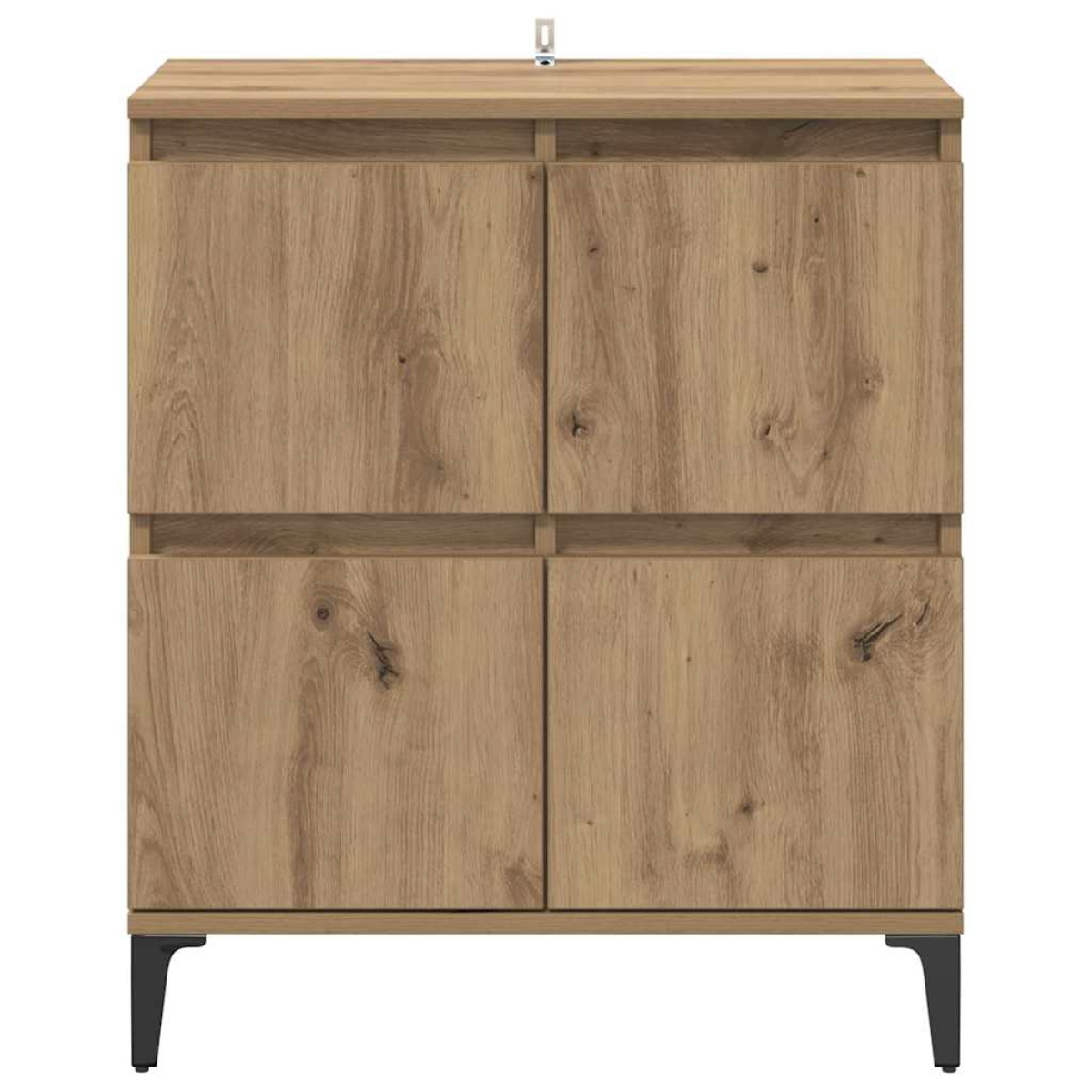 This Engineered Wood Sideboard offers an aesthetically pleasing storage solution within a rustic style, ideal for enhancing the charm of any dining room or living space. With its rectangular shape and structured appearance, it is sure to complement varied décor, creating an inviting environment for storing essentials. The sideboard's versatile features make it an appealing addition for those who appreciate natural beauty combined with practical functionality. Engineered Wood Construction The sideboard is constructed from high-quality engineered wood, offering the charm and grain of natural wood while boasting durability and longevity. The use of engineered materials ensures that each piece maintains structural integrity across diverse conditions, adding to its functionality and timeless appeal. Iron Legs Design Equipped with sturdy iron legs, the sideboard ensures robust support. The arrow foot leg style subtly elevates the furniture, providing stability while contributing to the furniture's rustic aesthetic. This combination of classical design with modern strength offers a seamless blend of style and practicality. Convenient Hinge Doors With its hinge doors, this sideboard allows easy access to stored items, making it perfect for organizing dining ware, linens, or even books and decor. The presence of doors keeps belongings dust-free and neatly organized, preserving the sideboard's sleek appearance. Spacious Storage Capacity Featuring ample room within its well-structured interior, this sideboard offers a generous amount of storage for various needs. From crockery to assorted household items, everything finds its place comfortably. Its practicality ensures everything remains neat, ensuring a clutter-free space. Easy to Maintain Designed for straightforward upkeep, the sideboard's engineered wood surface wipes clean with a damp cloth, maintaining shine and surface quality. This ease of cleaning keeps it looking fresh and new for long periods, making it a worthy addition to any home.