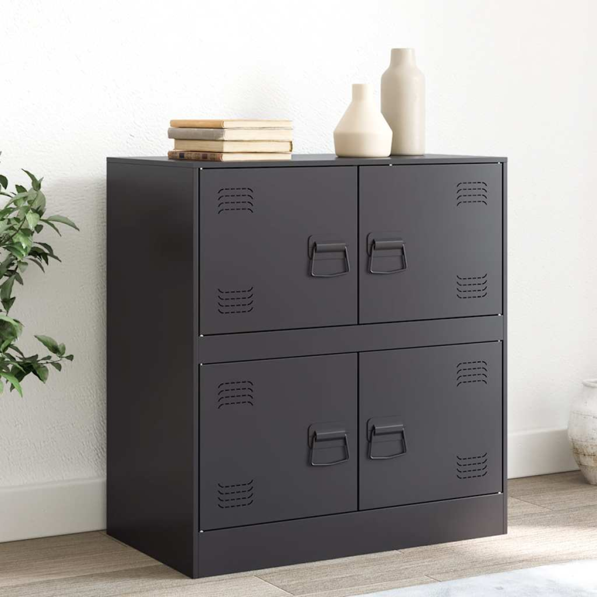 This sturdy sideboard is designed to be a focal point of your room with a trendy yet practical design. Stable material: The sideboard's frame is made of cold-rolled steel. Cold-rolled steel is a kind of low-carbon steel produced by a "cold rolling" method and processed at near normal room temperatures. Cold-rolled steel has a smoother surface, greater strength, and higher precision.Ample storage space: This sideboard offers handy storage space for keeping your magazines, books, remote controls and other small items well-organised and within reach.Easy to maintain: The table is easy to clean with a damp cloth and requires less maintenance.Practical handle: The sideboard comes with 4 handles that make it easy to open and close the cabinet while also adding to extra beauty. Warning:To prevent it from tipping over, this product must be used with the wall attachment device (not provided).