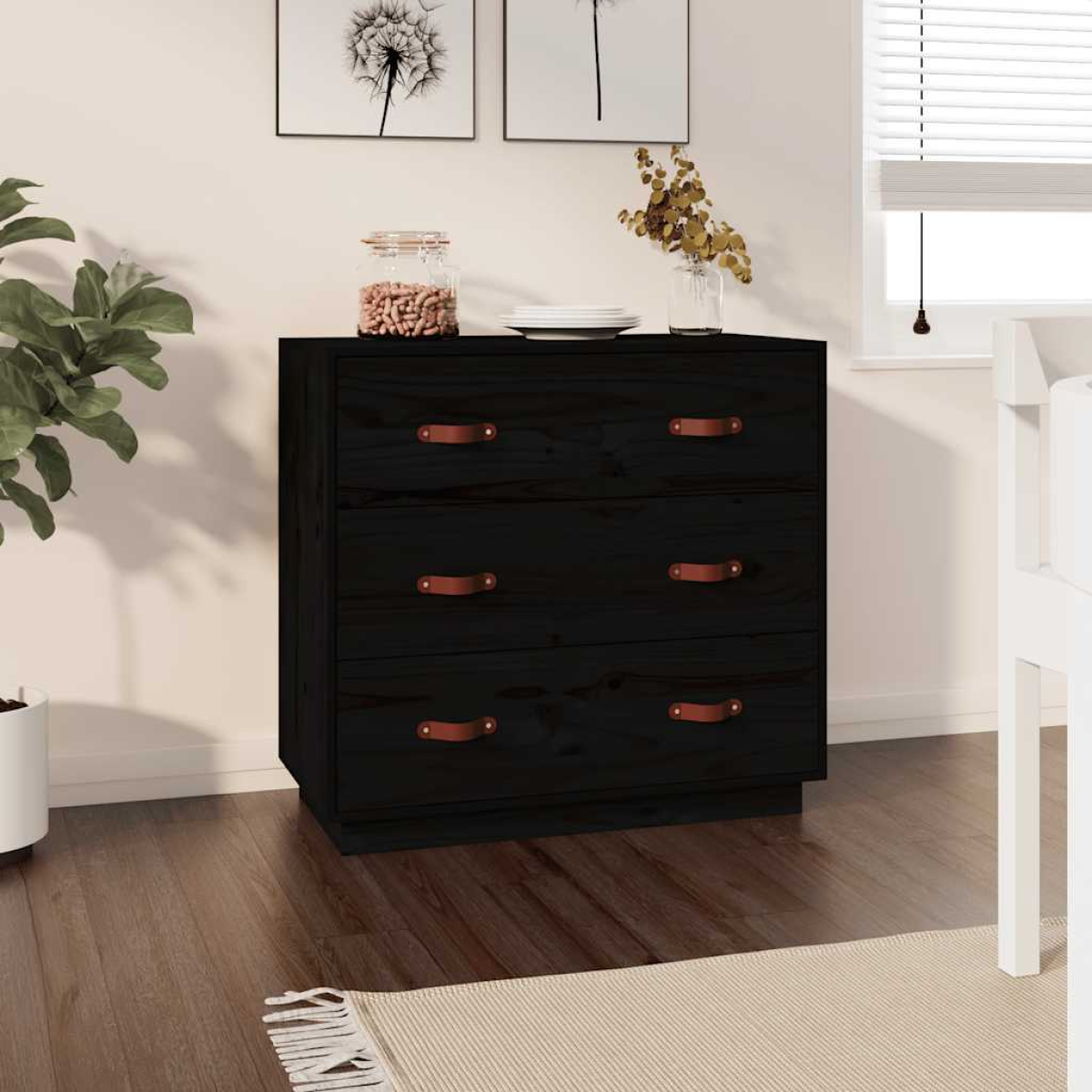 This wooden sideboard is meant to become an ideal complement in your room with its practical utility. Solid pine wood: This sideboard cabinet is made of solid pine wood. Solid pine wood is a beautiful natural material. Pine wood has a straight grain, and the knots give the material its signature, rustic look.Ample storage space: This cupboard features 3 spacious drawers, providing ample storage space for storing knick-knacks and keeping your magazines, books, DVDs and multimedia devices well organised.Sturdy top: The sturdy tabletop of the side cabinet is ideal for displaying your decorative objects, photo frames, or potted plants. Warning:In order to prevent overturning, this product must be used with the wall attachment device provided. Note:Each product comes with an assembly manual in the box for easy assembly.