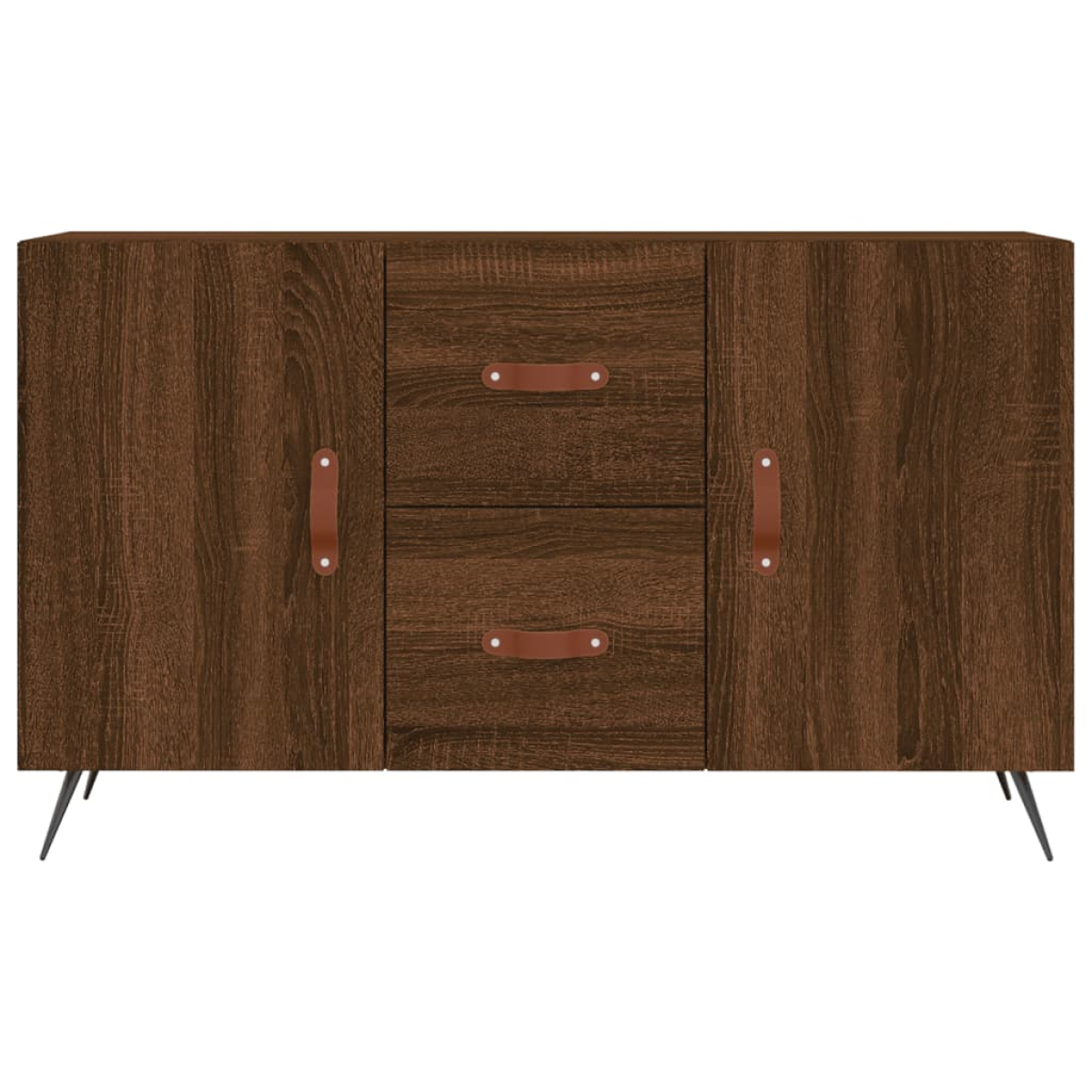 This modern sideboard, featuring a timeless look, is meant to be an excellent addition to your home. Durable material: The engineered wood is of exceptional quality with smooth surface and also features strength, stability and resistance to moisture. Metal legs: The metal legs add a modern and calm style to your interior while ensuring stability. Ample storage space: The sideboard cabinet offers ample storage space for keeping your various daily essentials well organised and within easy reach.Stable and sturdy top: The top of the cupboard is perfect for displaying your decorative items, picture frames, and potted plants. Practical doors: Keep your essentials free from dust by hiding them behind the doors. In addition, the handles on the doors and drawers make it easy to open the storage cabinet. Warning:To prevent it being overturned, this product must be used with the provided wall attachment device.