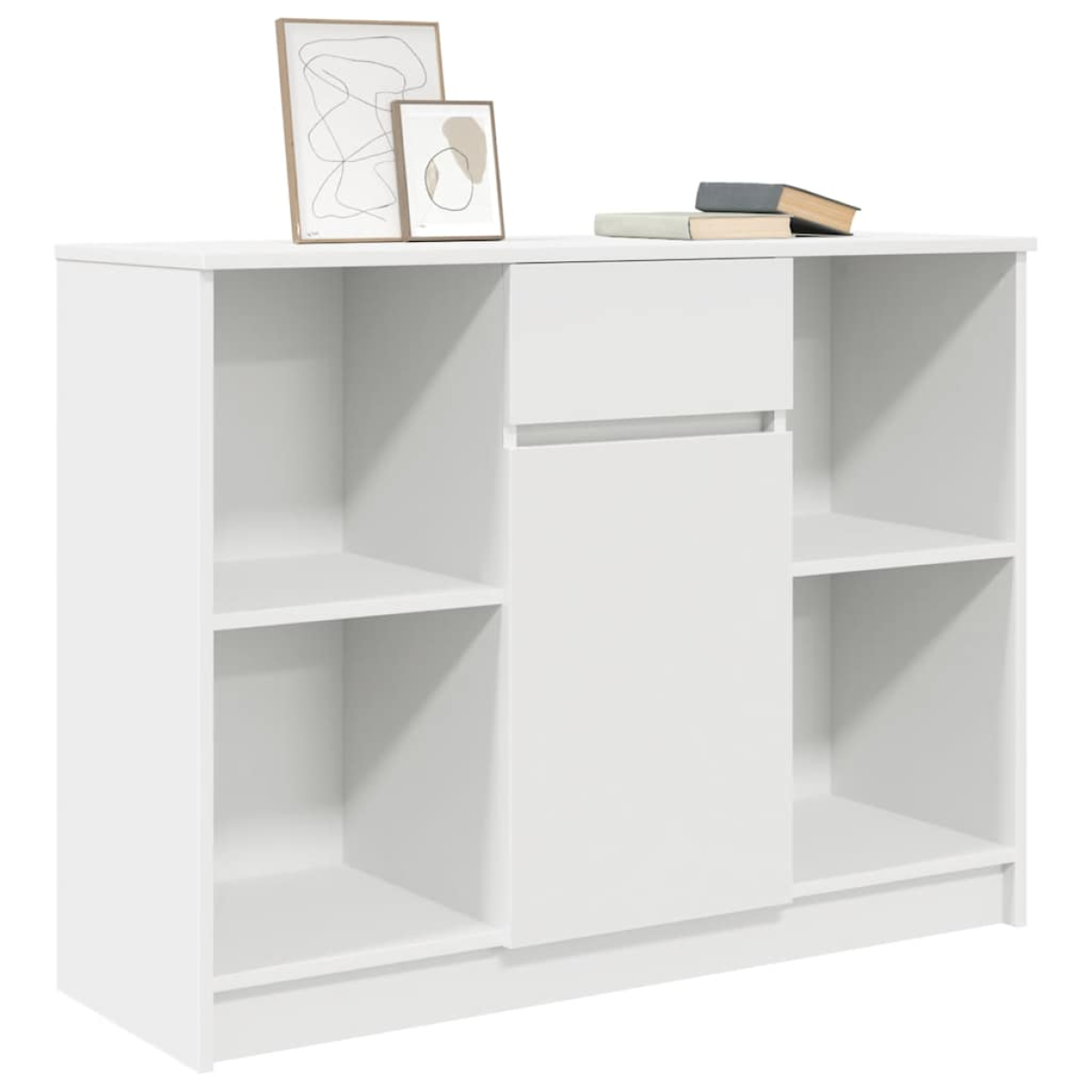 The sideboard offers ample storage space, helping to keep your room tidy and organised while combining practicality with aesthetics. Stable and durable material: Engineered wood is a durable and stable material with a smooth surface that is resistant to moisture, warping, and splitting, making it a reliable choice for a variety of projects.Ample storage space: The storage cabinet features a door, two shelves and a drawer, ensuring your items are well-organised and tidy. The cabinet door provides enclosed storage to keep your belongings protected and out of sight, while the drawer offers additional space for easy access to various items. Two shelves help classify your possessions, enhancing organisation and cleanliness.Versatile use: The buffet cabinet is perfect for any room, whether as a stylish storage solution in the living room, a functional addition to the dining area, or a practical organiser in the home office. Its adaptable design complements various style, making it a great choice for storing books, linens, or office supplies while enhancing your space.Customisable installation: The sideboard cabinet can be assembled in two configurations, allowing you to position the drawer and small door on either the right or left side, with the larger door accordingly. This flexibility ensures it meets your specific needs and preferences.Easy to maintain: Thanks to its smooth surface, the hallway cabinet is easy to clean with a damp cloth and requires less maintenance. Warning:To prevent it from tipping over, this product must be used with the provided wall attachment device.