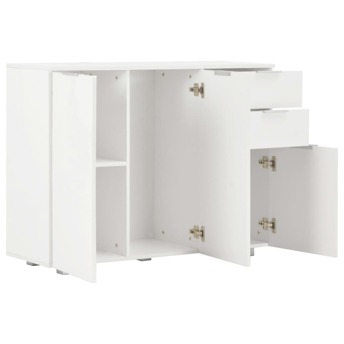 Keep everything nice and tidy in your living room with our elegant sideboard! This practical sideboard will satisfy your various requirements and be an ideal complement in your room. Made of engineered wood with a high gloss white finish, the drawer cabinet exudes a refined look and is exceedingly stable and durable. Additionally, equipped with 2 drawers and 3 doors, the sideboard provides ample storage space for your various items, making your room tidy and clean. This high gloss storage cabinet is easy to clean. Upgrade your interior decor to the next level with our elegant sideboard!