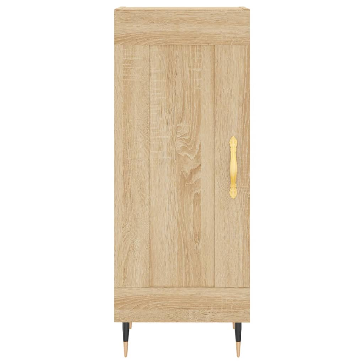 This trendy sideboard, featuring a timeless look, is meant to be an excellent addition to your home. Durable material: The engineered wood is of exceptional quality with smooth surface and also features strength, stability and resistance to moisture.Ample storage space: The sideboard cabinet has 3 compartments, providing ample storage space for keeping your various daily essentials well organised and within easy reach.Displaying function: The top of the cupboard is perfect for placing potted plants, framed photos and other decorative items.Practical door: Keep your essentials free from dust by hiding them behind the door. In addition, the handle on the door makes it easy to open the storage cabinet.Metal legs: The metal legs add a modern and calm style to your interior while ensuring stability. Warning:To prevent it being overturned, this product must be used with the provided wall attachment device.