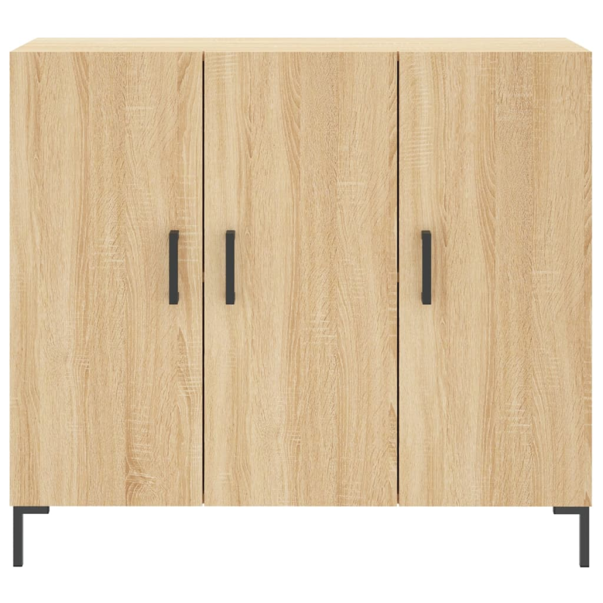 This modern sideboard, featuring a timeless look, is meant to be an excellent addition to your home. Durable material: The engineered wood is of exceptional quality with smooth surface and also features strength, stability and resistance to moisture. Metal legs: The metal legs add a modern and calm style to your interior while ensuring stability. Ample storage space: The sideboard cabinet offers ample storage space for keeping your various daily essentials well organised and within easy reach.Stable and sturdy top: The top of the cupboard is perfect for displaying your decorative items, picture frames, and potted plants. Practical doors: Keep your essentials free from dust by hiding them behind the doors. In addition, the handles on the doors make it easy to open the storage cabinet. Warning:To prevent it being overturned, this product must be used with the provided wall attachment device.