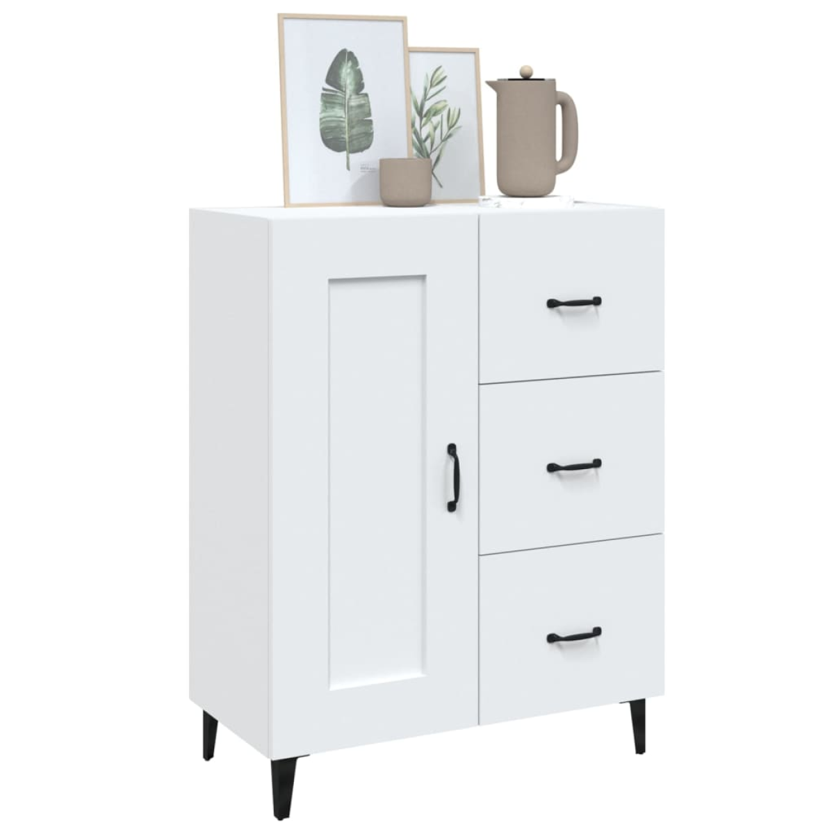 This classic sideboard brings a touch of elegance in addition to practicality to your living area. Sturdy material: The engineered wood is of exceptional quality with smooth surface and also features strength, stability and resistance to moisture. Ample storage space: This side cabinet boasts compartments to allow you neatly organize your different items, such as books. Sturdy top: The top of this side board is also ideal for displaying decorative objects, photo frames and potted plants. Warning:In order to prevent overturning, this product must be used with the wall attachment device provided.Note:Each product comes with an assembly manual in the box for easy assembly.