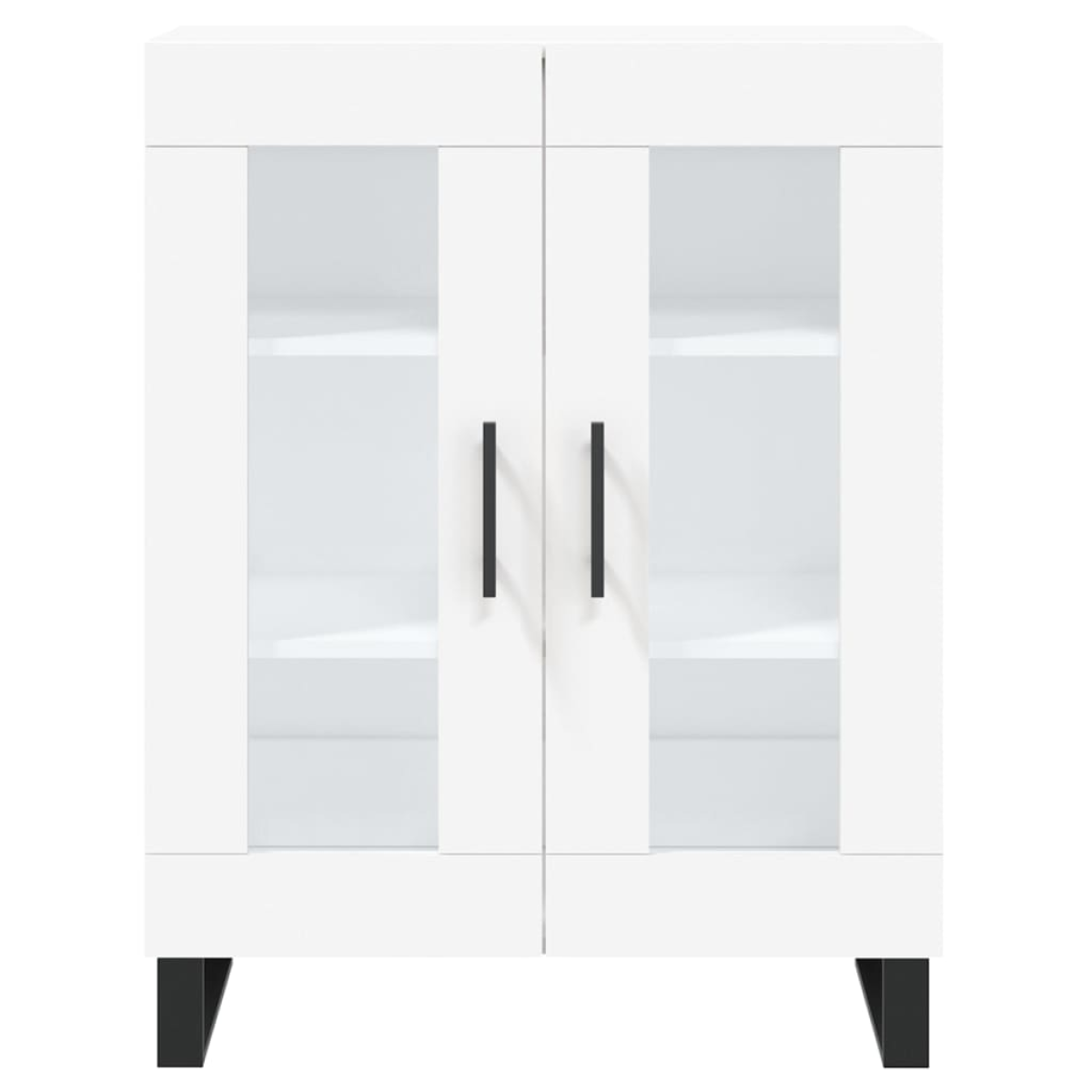 This classic sideboard, featuring a timeless look and glass design, is meant to be an excellent addition to your home. Durable material: The engineered wood is of exceptional quality with smooth surface and also features strength, stability and resistance to moisture. Made of engineered wood, the cabinet is easy to clean with a damp cloth.Ample storage space: The sideboard cabinet offers ample storage space for keeping your various daily essentials well organised and within easy reach.Glass design: The glass design highlights the cupboard's elegance and allows you to display your favourite things.Displaying function: The top of the storage cabinet is great for displaying your decorative items, photo albums or small plants.Metal feet: The metal feet add a calm style to your interior while ensuring stability. Warning:To prevent it being overturned, this product must be used with the provided wall attachment device.