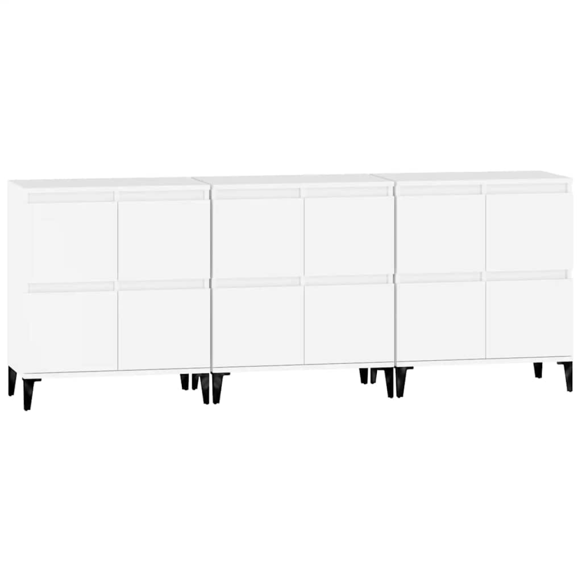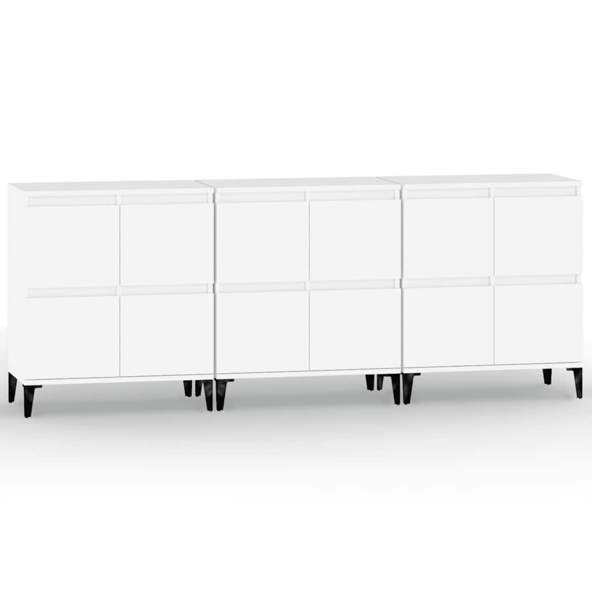 These classic sideboards, featuring a timeless look, are meant to be an excellent addition to your home. Durable material: The engineered wood is of exceptional quality with smooth surface and also features strength, stability and resistance to moisture. Made of engineered wood, the cabinet is easy to clean with a damp cloth.Ample storage space: Equipped with 4 compartments, the sideboard cabinet offers ample storage space for keeping your various daily essentials well organised and within easy reach.Displaying function: The top of the cupboard is great for displaying your decorative items, photo albums or small plants. Warning:To prevent it being overturned, this product must be used with the provided wall attachment device.