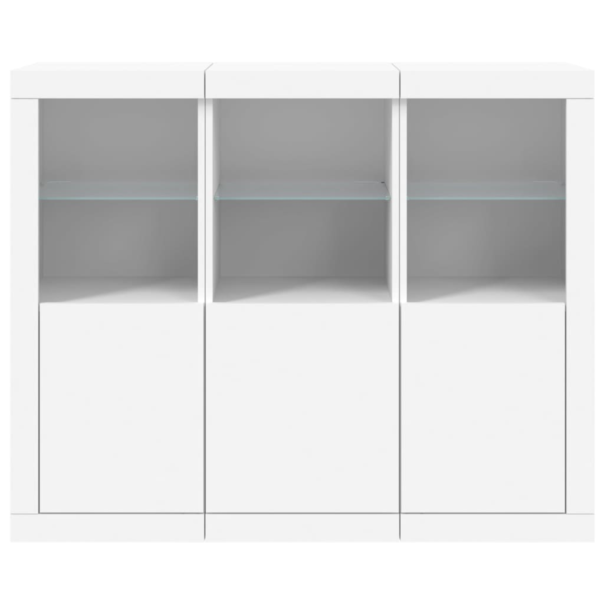 Decorate your room with these modern sideboards with LED lights, they easily blend with furniture in any style at your house. Durable material: The engineered wood is of exceptional quality with a smooth surface and features strength, stability and resistance to moisture.Ample storage space: These buffets provide plenty of storage space for keeping your magazines, books, remote controls and other small items well-organised and within easy reach.Displaying function: The sturdy top of sideboard cabinets is ideal for displaying decorative objects, photo frames, or potted plants.Adjustable LED lights: These storage cabinets are equipped with RGB LED lights, which have different menus to change the light colour and adjust it automatically, decorating your home colourful and beautiful. Warning:To prevent it being overturned, this product must be used with the provided wall attachment device.Good to know:The product has a USB connector that requires a certified 5V USB power source (not included).